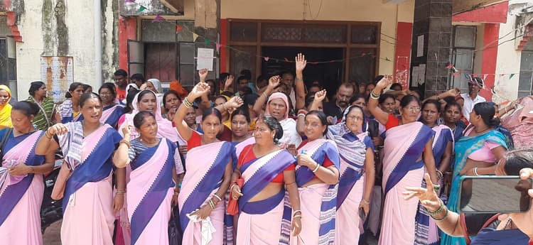 पूर्णिया. अपनी बीस सूत्री मांगों को लेकर बिहार चिकित्सा जन स्वास्थ्य कर्मचारी संघ पूर्णिया जिला शाखा की बैठक जिला प्रतिरक्षण सभागार में शनिवार को हुई. बैठक में संघ से जुड़े मुद्दों पर विस्तार से चर्चा की गई और सिविल सर्जन पूर्णिया के माध्यम से अपनी मांगों का संलेख मुख्यमंत्री मंत्री और स्वास्थ्य मंत्री को भेजा गया. बैठक में संगठन के संचालन को लेकर भी बातें की गयीं जिसमें सभी प्रखंडों में चुनाव की तिथि निर्धारित कर चुनाव कराने पर निर्णय लिया गया. इस बैठक में मुख्य रूप से सुशील झा, संयोजक ताज बाबु, शिवकुमार राजपाल, पंकज कुमार राय, अध्यक्ष दीपक कुमार, संयुक्त मंत्री राजकुमार भारती, मंत्री विशेष शाखा शंभू ठाकुर, अध्यक्ष विशेष शाखा राजीव रंजन, कोषाध्यक्ष अरुण सिंह, संघर्ष मंत्री फैयाज आलम, सदस्य तथा अन्य सभी कार्यकारिणी सदस्यों ने भाग लिया. इनकी मांगों में मुख्य रूप से एन०एच०एम० संविदा कर्मियों की अनिश्चितकालीन कार्य बहिष्कार को अविलम्ब सम्मानजनक समझौता कराने, महिला स्वास्थ्य कर्मियों साथ बदतमीजी करने वालों के खिलाफ कानूनी कार्रवाई किये जाने, पुरानी पेंशन योजना लागू करने, आठवें वेतन पुनरीक्षण समिति का गठन, ठेका-संविदा की बहाली पर रोक लगाने एवं स्वीकृत रिक्त पदों पर नियमित बहाली, कर्मियों का वेतन / मानदेय माह के अंतिम तिथि को भुगतान, स्मार्ट फोन से फेस अटेन्डेन्स सिस्टम के आदेश को अविलम्ब निरस्त करने, बकाये मानदेय का अद्यतन भुगतान किये जाने, आशा कार्यकर्ता, आशा फेसिलिटेटरों व वैक्सीन कुरियरों को सरकारी कर्मचारी का दर्जा दिए जाने सहित प्रोन्नति के पदसोपानों के अनुसार पदों का सृजन / पृथक्कीकरण कर वरीयता के आधार पर वरीय पदों पर पदस्थापन, वेतन तथा सुविधाओं से जुड़ी मांगें आदि शामिल रहीं. इस मौके पर सिविल सर्जन कार्यालय के समक्ष ममता, आशा एवं अन्य कर्मियों ने नारेबाजी भी की. मौके पर सुशील कुमार झा, ताज बाबु, शिवकुमार राजपाल, पंकज कुमार राय, दीपक कुमार, राजकुमार भारती, शंभू ठाकुर, राजीव रंजन, अरुण सिंह, फैयाज आलम, भवतारिणी शरण, नीलम झा, मनोरमा देवी, ललिता देवी, नीलमणि सिंह, नवीन सिन्हा, डोली, पूनम, माला, अनिता, रीता सहित सभी प्रखंडों से आयी आशा, ममता एवं कोरियर उपस्थित रहे. फोटो. 18 पूर्णिया 13- मांगों को लेकर नारेबाजी करते ममता, आशा एवं अन्य कर्मी