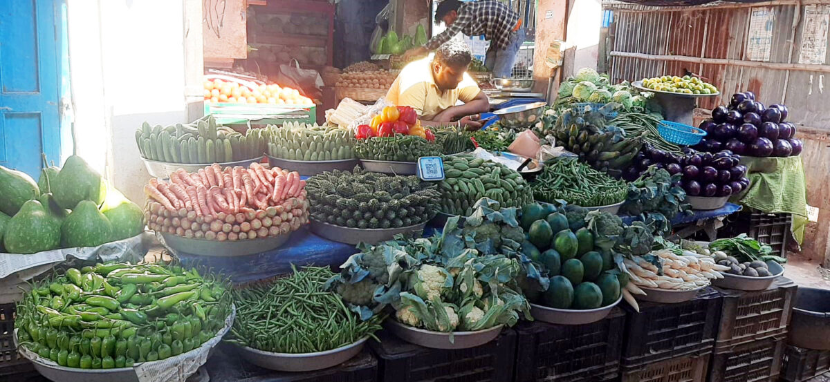 सब्जी उत्पादक किसानों का कहना है कि बीते माह मोंथा चक्रवात का सब्जी की फसलों पर बुरा असर पड़ा था जिस वजह से लोकल सब्जियों की पूर्ण रूप से बाजार में आवक अभी उतनी नहीं हो पा रही है. एक तो चक्रवात की वजह से लत्तर वाली सब्जियों के उत्पादन पर इसका असर पड़ा और उनके सूखने गलने की वजह से उपज में कमी आ गयी. वहीं रबी की अगात सब्जियों में गोभी वर्गीय सब्जियां लेट हो गयीं. लोगों का अनुमान है कि आनेवाले सप्ताह में सब्जियों के भाव नीचे आ सकते हैं.—————-सब्जियों के बाजार भाव