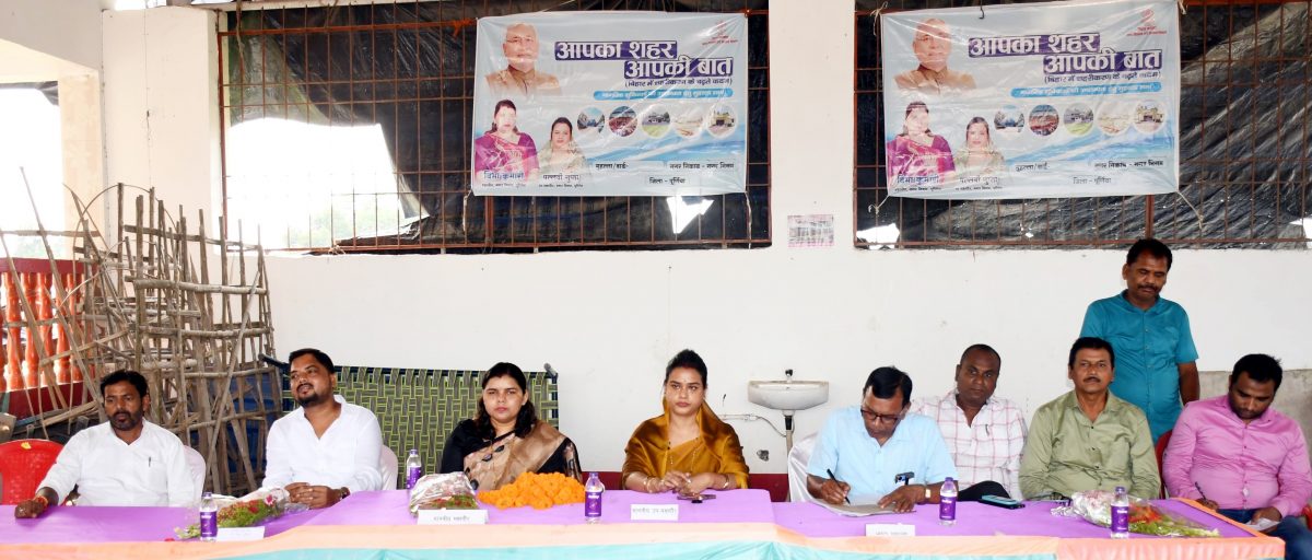आपका शहर, आपकी बात कार्यक्रम में वार्डवासियों को महापौर ने दिया भरोसा पूर्णिया. वार्ड नंबर आठ स्थित दुर्गा मंदिर राइफल रेंज में शनिवार को नगर विकास एवं आवास विभाग के तत्वावधान में आपका शहर, आपकी बात कार्यक्रम का आयोजन किया गया. कार्यक्रम में पहुंची महापौर विभा कुमारी, उप महापौर पल्लवी गुप्ता, वार्ड पार्षद ऋतुराज यादव सहित अधिकारियों का स्वागत स्थानीय लोगों ने किया. कार्यक्रम की शुरूआत करते हुए महापौर विभा कुमारी ने बताया कि इस कार्यक्रम के माध्यम से आपकी जो समस्याएं निकलकर सामने आएगी, उसका समाधान भी किया जाएगा. कार्यक्रम में वार्डवासियों ने सड़क, अस्पताल, शौचालय, प्रधानमंत्री आवास, साफ-सफाई, राशन कार्ड, लालकार्ड, बिजली, नल-जल सहित मूलभूत समस्याएं रखी. महापौर ने कहा कि कार्यक्रम का नाम ही आपका शहर, आपकी बात रखा गया है तो जाहिर है इसमें आपलोगों की शिकायतों को प्राथमिकता के तौर पर लिया जाएगा और इसपर तत्काल कार्रवाई की जाएगी. महापौर विभा कुमारी ने कहा कि इन वार्डों के विकास के लिए नए तरीके से विकास योजनाओं के निर्धारण की आवश्यकता है. आप अपनी जरूरतों को बताएं, हम उसे विकास योजनाओं में शामिल कर मूर्त रूप देंगे. आपकी योजनाओं को नगर निगम की बैठक में पारित कर विभाग को भेजा जाएगा. इस मौके पर उप महापौर पल्लवी गुप्ता ने भी अपने विचार रखे. वहीं वार्ड पार्षद ऋतुराज यादव ने कहा कि पहले हमलोगों का वार्ड पंचायत में आता था. जब से हमारा वार्ड नगर निगम में शामिल हुआ है तब से लेकर निश्चित रूप से वार्ड का काफी विकास हुआ है. हमारे वार्ड में नगर निगम द्वारा काफी योजनाएं दी जा चुकी है जबकि अन्य वार्डों के समकक्ष लाने के लिए और अधिक योजनाओं की यहां जरूरत है. नगर विकास एवं आवास विभाग द्वारा आपका शहर, आपकी बात कार्यक्रम चलाने के बाद निश्चित रूप से इस वार्ड का और अधिक विकास होगा. कार्यक्रम में मुख्य रूप से वार्ड पार्षद प्रतिनिधि ललनेश सिंह, बहादुर यादव, मनोज साह, प्रधान सहायक उमेश यादव, दिलीप चौधरी सहित जिला एवं नगर निगम के अधिकारी, कर्मी एवं सैकड़ों की संख्या में वार्डवासी मौजूद थे.