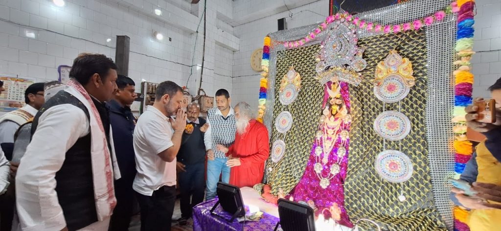 राहुल गांधी ने अररिया के प्रसिद्ध खड़गेश्वरी काली मंदिर में पूजा-अर्चना की. उन्होंने मंदिर के पुजारी और मां काली के साधक नानू दा से आशीर्वाद लिया. राहुल गांधी ने मां काली से देश की तरक्की की कामना की. वही पूरे देशवासियों की सुख-शांति और समृद्धि के लिए मन्नत मांगी.
