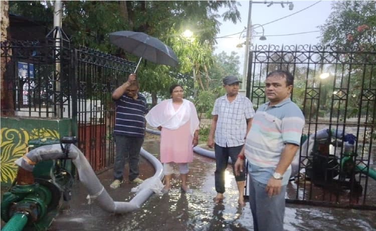 मेयर सीता साहू सशक्त स्थायी समिति के सदस्य इंद्रदीप चंद्रवंशी के साथ बारिश के बाद जलनिकासी की व्यवस्था देखने निकलीं. निरीक्षण के दौरान उन्होंने सैदपुर नाले में जल स्तर को काफी ऊंचा पाया, जो यदि ओवरफ्लो होता तो कई घरों में पानी जा सकता था. नाले में पानी के इतने ऊचे स्तर की वजह जानने जब वह पहाड़ी संप हाउस पहुंचीं, तो मालूम हुआ कि 10 में से पांच पंप ही चल रहे हैं और बाकी मेंटेनेंस में हैं. साथ ही वहां कुएं में गाद भी दिखा. मेयर ने पदाधिकारियों को गाद जल्द निकालने और मरम्मत कराकर जल्द सभी 10 पंपों को चलाने का निर्देश दिया.