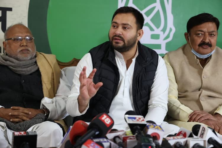 RJD Human Chain: किसान आंदोलन (Kisan Andolan) की गूंज से बिहार की राजनीति (Bihar Politics) में भी हलचल है. किसान आंदोलन के समर्थन में राजद (RJD) के नेतृत्व में महागठबंधन (Mahagathbandhan) ने कल यानी 30 जनवरी को मानव श्रृंखला (Human Chain) का आयोजन है. तेजस्वी यादव (Tejashwi Yadav) ने आज प्रेस कॉन्फ्रेंस कर बताया कि सभी महागठबंधन के नेता की बैठक थी.