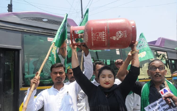 राजद की महंगाई के खिलाफ महिलाओं ने भी बढ़ चढ़कर हिस्सा ले रही हैं. हाथ में गैस सिलेंडर लेकर वे अपना विरोध प्रदर्शन कर रही हैं.