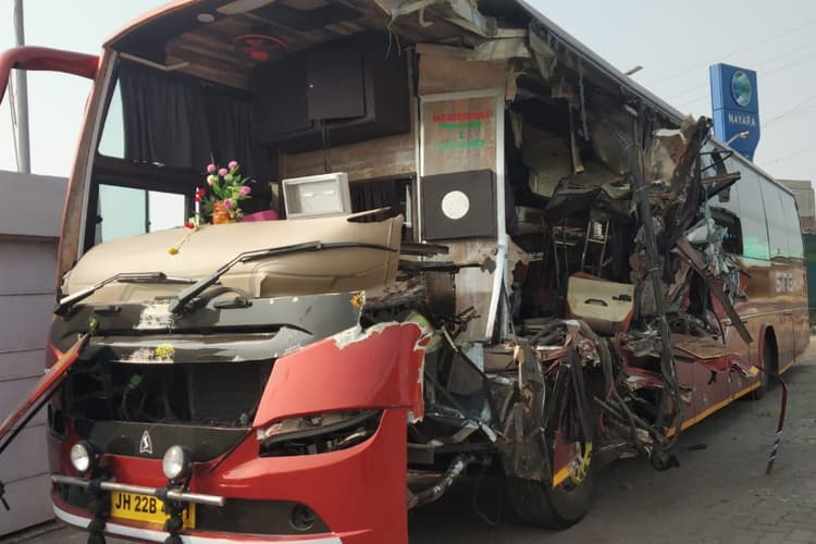 रांची-रामगढ़ उच्च पथ कर्क रेखा उकरीद बीपी पेट्रोल पंप के समीप सोमवार की रात करीब साढ़े 12 बजे टाटा से आरा (बिहार) जा रही सिंह बस (जेएच-22 वी 4581) ओवर टेक करने के क्रम में आगे चल रहे हाइवा (जेएच 10एआर 6945) को पीछे से जोरदार टक्कर मार दी. इससे हाइवा पलट गया. घटना के बाद बस का चालक भाग निकला. करीब आधे घंटे तक बस के यात्री राहत बचाव के लिए आवाज लगाते रहे. मौके पर पहुंची ओरमांझी पुलिस ने सिंह बस पर सवार गंभीर रूप से घायल पांच यात्रियों को रिम्स पहुंचाया, जहां डॉक्टरों ने बिहार के आरा (कटरिया) निवासी विश्वनाथ सिंह (51 वर्ष) को मृत घोषित कर दिया. मृतक विश्वनाथ सिंह की पुत्री अंजली कुमारी (22 वर्ष) के हाथ व पैर में गंभीर चोट है. ओरमांझी पुलिस ने मृतक के शव को पोस्टमार्टम के बाद परिजनों को सौंप दिया.