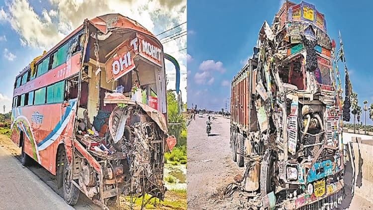 बोधगया में बस व ट्रक की टक्कर, ड्राइवर-खलासी घायल