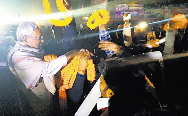 सासाराम जिला परिसदन में उद्योग मंत्री जयकुमार सिंह, करगहर के विधायक वशिष्ठ सिंह, जदयू जिलाध्यक्ष नागेंद्र चंद्रवंशी, कांग्रेस के जिलाध्यक्ष संतोष कुमार मिश्र, जदयू नेता अनिल सिंह यादव, पूर्व विधायक श्याम बिहारी राम, अमरेश चौधरी, बदरे कामिल अंसारी, रिंकू सिंह, बिंदा चंद्रवंशी व अन्य ने मुख्यमंत्री का स्वागत किया. बिक्रमगंज के तेंदुनी चौक पर काराकाट के राजद विधायक संजय यादव ने गाजे-बाजे के साथ मुख्यमंत्री का स्वागत किया.