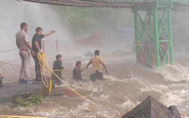 वाटरफॉल ने रौद्र रूप लिया, सैलानियों का रेस्क्यू किया गया