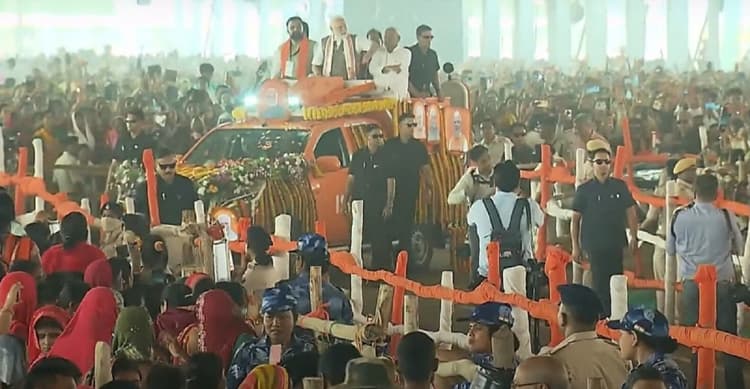 PM Modi in Bihar: बिक्रमगंज. प्रधानमंत्री नरेंद्र मोदी बिहार की राजधानी पटना से रोहतास जिले के बिक्रमगंज पहुंच गए हैं. बिक्रमगंज में पीएम मोदी ओपन जीप पर सवार होकर मुख्यमंत्री नीतीश कुमार और डिप्टी सीएम सम्राट चौधरी के साथ मंच पर पहुंचे. सभास्थल पर भारी भीड़ जुटी है. प्रधानमंत्री नरेंद्र मोदी ने रिमोट बटन दबाकर बिहार को 48500 करोड़ रुपये की परियोजनाओं की सौगात दी. इसमें कई हाइवे, रेलवे और बिजली की परियोजनाओं का शिलान्यास और लोकार्पण किया गया.