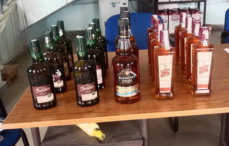 कटोरिया-सिमुलतला मार्ग पर मथुरा मोड़ पर हुई कार्रवाई कटोरिया. एसपी डा सत्यप्रकाश व एसडीपीओ राजकिशोर कुमार के संयुक्त निर्देश पर आनंदपुर थाना की पुलिस टीम ने अवैध शराब के निर्माण, बिक्री व सेवन के विरूद्ध सघन चेकिंग व छापेमारी अभियान चलाया. इस क्रम में बाइक से अवैध विदेशी शराब की डिलीवरी करने जा रहे तस्कर ने कटोरिया-सिमुलतला मार्ग पर मथुरा मोड़ के समीप पुलिस टीम को देखते ही अवैध शराब से भरे बैग को फेंक कर भाग निकला. उक्त बैग से उन्नीस बोतल यानि 8.250 लीटर अवैध विदेशी शराब बरामद हुआ है. मौके से भागे तस्कर की पुलिस टीम ने काफी दूर तक पीछा भी किया, लेकिन वह जंगल का लाभ उठाकर भाग निकलने में सफल रहा. इस कार्रवाई का नेतृत्व आनंदपुर थानाध्यक्ष बिपिन कुमार कर रहे थे. जिसमें अन्य पुलिस पदाधिकारी व जवान शामिल थे. इस मामले में थाना में प्राथमिकी दर्ज की गयी है.