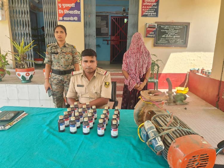 सोनवर्षाराज . थाना पुलिस ने गुप्त सूचना के आधार पर परवाहा गांव में छापेमारी कर 27 बोतल कोडिनयुक्त कफ सीरप व चोरी के एक मोटर पंप के साथ महिला को गिरफ्तार कर लिया. हालांकि इस दौरान महिला का पति मौके से फरार हो गया. थानाध्यक्ष अविनाश ने बताया कि गुप्त सूचना के आधार पर खजुराहा पंचायत के परवाहा गांव निवासी शशि यादव के घर छापेमारी की गयी. जहां से 27 बोतल कोडिनयुक्त कफ सीरप के अलावा चोरी का एक मोटर पंप बरामद किया गया. बरामद सामान को जब्त कर शशि यादव की पत्नी तुसली देवी को गिरफ्तार किया गया. जबकि इस दौरान महिला का पति शशि यादव मौके से फरार हो गया. मामले में प्राथमिकी दर्ज कर विधिसम्मत कार्रवाई की जा रही है.