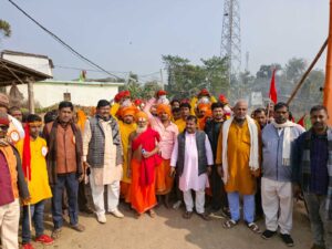 मकदमपुर गांव में सात दिवसीय श्रीमद् भागवत कथा का आयोजन बनमा ईटहरी. प्रखंड के मकदमपुर गांव में श्रीमद् भागवत कथा ज्ञान यज्ञ एवं 24 घंटे का रामधुनी महायज्ञ को लेकर गाजे-बाजे के साथ 501 किशोरी कन्याओं द्वारा पीला वस्त्र धारण कर कलश शोभायात्रा निकाली गयी. कलश शोभा यात्रा की अगुवाई जजमान बने देवनारायण दास द्वारा की गयी. कार्यक्रम के सफल संचालन को लेकर ग्रामीण समेत युवाओं की टोली राधे-राधे कहते हुए आगे बढ़ रही थी. आगे से प्रशासन की भी गाड़ी तैनात दिखी. वहीं ईटहरी मुखिया प्रतिनिधि पवन यादव, पूर्व प्रमुख रमेशचंद्र यादव, पपीन कुमार भी आगे-आगे चल रहे थे. शोभायात्रा गांव से निकल कर तेलियाहाट बाजार होते हुए हंसारी घाट पर पहुंच पंडित द्वारा वैदिक मंत्रोच्चार के साथ कलश में जल भर कर बनमा चौक होते हुए कलोतवा ईटहरी होते वापस यज्ञ स्थल पर पहुंचा. कलश यात्रा के दौरान पूरा माहौल भक्तिमय हो गया. इस संबंध में देवनारायण दास ने बताया कि 16 जनवरी से 22 जनवरी तक श्रीमद् भागवत कथा सुबह के 8:00 से लेकर दोपहर तक आयोजित की जायेगी. कोसी क्षेत्र के प्रख्यात कथावाचक मिथिलेश दास के द्वारा कथा कही जायेगी. यज्ञ स्थल पर भव्य पंडाल का निर्माण किया गया है. वहीं स्थानीय मंडलियों के साथ-साथ बाहर की मंडलियों द्वारा रामधुनी का भी आयोजन 23 जनवरी को होगा. मौके पर शंभु पंडित, जोगिंदर पंडित, सुरेंद्र पंडित, विष्णुदेव यादव, अरुण यादव, पप्पू कुमार, नाथो यादव, विकास पंडित, बद्री यादव व अन्य मौजूद थे.