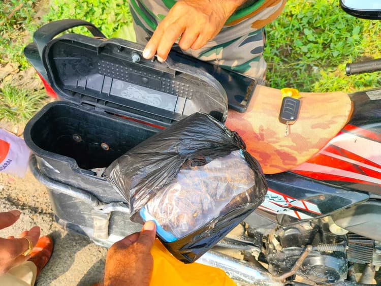 पतरघट . स्थानीय थाना पुलिस द्वारा कपसिया पतरघट मोड़ के समीप शनिवार की सुबह पतरघट 112 टीम के सहयोग से एक बाइक सहित डिक्की में रखा 520 ग्राम गांजा व एक कट्टा व जिंदा कारतूस बरामद किया गया. 112 की सूचना पर पतरघट पुलिस मौके पर पहुंचकर कार्रवाई में जुट गयी. लेकिन तीन बदमाश दूसरे बाइक पर सवार होकर पतरघट पुलिस को चकमा देकर मौके से भागने में सफल रहे. कपसिया पतरघट मोड़ स्थित दुकानों या अगल-बगल तलाशी लेने पर बदमाशों को पकड़ने में पतरघट पुलिस को सफलता मिल सकती थी. थानाध्यक्ष पुनि प्रभाकर भारती ने बताया कि पतरघट 112 टीम का वाहन देख कपसिया मोड़ के समीप बाइक छोड़ तीन बदमाश एक बिना नंबर के ब्लू रंग के अपाचे बाइक पर सवार होकर मधेपुरा की तरफ भाग गये. पतरघट 112 टीम के द्वारा प्राप्त सूचना पर वरीय पदाधिकारी को सूचित करते उनके अलावे पुअनि कमलेश कुमार सिंह, पुअनि नीरज कुमार, थाना रिजर्व गार्ड के साथ कपसिया मोड़ पहुंच कर बदमाशों का रखा हीरो एचएफ डीलक्स बाइक बीआर 09 एल 4434 के डिक्की का तलाशी ली. पुलिस ने बाइक के डिक्की से एक कट्टा, चार कारतूस, 520 ग्राम गांजा, एक वोटर आईडी कार्ड बरामद करते बाइक को जब्त कर लिया. उन्होंने बताया कि मामले में पतरघट थाना कांड संख्या 161/24 दर्ज कर फरार अपराधियों को चिह्नित कर गिरफ्तारी के लिए कार्रवाई की जा रही है. भाकपा ने पुलिसिया जुल्म के विरोध में किया भूख हड़ताल, सहमति के बाद भूख हड़ताल किया समाप्त सलखुआ . प्रखंड कार्यालय सलखुआ पर शनिवार को भाकपा के नेताओं व कार्यकर्ताओं ने पुलिसिया जुल्म के विरोध में एक दिवसीय भूख हड़ताल पर बैठे. सभी व्यक्तियों को जूस पिला कर भूख हड़ताल समाप्त कराया गया. हड़ताल को स्थगित कराने वालों में पूर्व मुखिया सह सेवा निवृत राजस्व कर्मी नारायण प्रसाद यादव, सेवानिवृत सचिवालय के सेक्शन अधिकारी दरोगा प्रसाद यादव, सेवानिवृत शिक्षक रामचरित्र दास, रामानुज प्रसाद यादव शामिल थे. ओम प्रकाश नारायण ने बताया कि यह भी निर्णय लिया गया कि इस भूख हड़ताल पर कारवाई नहीं की गयी तो आगामी 28 अगस्त से सहरसा समाहरणालय के समक्ष अनिश्चित कालीन भूख हड़ताल किया जाएगा.