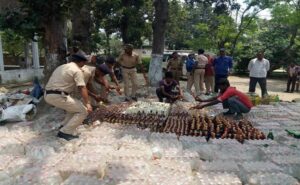बिहार : सहरसा में छापेमारी के दौरान जब्त देशी-विदेशी शराब को किया गया नष्ट