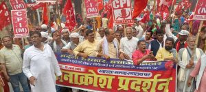 समाहरणालय पर प्रदर्शन कर डीएम कौ सौंपा 15 सूत्री मांगपत्र सहरसा . भारत की कम्युनिस्ट पार्टी मार्क्सवादी एवं भारतीय कम्युनिस्ट पार्टी के राज्यव्यापी आह्वान पर 15 सूत्री मांगों को लेकर गुरुवार को समाहरणालय पर प्रदर्शन किया गया. रेलवे स्टेशन के नव निर्मित भवन के पश्चिमी भाग में माकपा एवं भाकपा के लाल झंडे तले जिले के विभिन्न हिस्सों से जत्था आना शुरू हुआ. 12 बजते बजते पूरा प्रांगण व आसपास का इलाका प्रदर्शनकारियों एवं लाल झंडों से पट गया. सुसज्जित एवं अनुशासित तरीके से कतारबद्ध प्रदर्शनकारियों ने जनाक्रोश मार्च निकाला. समर्थक अपनी मांगों के समर्थन में ढोल-नगाड़े गाजे बाजे के थाप पर थिरकते अपनी मांगों को लेकर गगनचुंबी नारे लाल झंडा जिंदाबाद, भाकपा माकपा जिंदाबाद, किसान मजदूर एकता जिंदाबाद, पूंजीवाद हो बर्बाद, भूमिहीनों को 10 डिसमिल जमीन बास के लिए देना होगा, पर्चा की जमीन पर दखल दिहानी दिलाना होगा, लूट अपहरण हत्या बलात्कार पर रोक लगाना होगा, पुलिसिया जुल्म बंद करो, प्रीपेड स्मार्ट मीटर नहीं चलेगा, वृद्धजनों विधवा विकलांग को पांच हजार पेंशन देना होगा, रसोईया, आशा, ममता, कुरियर, फेसिलेटर, आंगनबाड़ी कार्यकर्ता, सहायिका, सफाई कर्मी, स्वच्छता कर्मी को स्थायीकरण के साथ 18 हजार मानदेय देना होगा, एमएसपी की गारंटी करना होगा के नारे लगाते शहर के विभिन्न हिस्सों महावीर चौक, दहलान चौक, शंकर चौक, डीबी रोड, थाना चौक, वीर कुंवर सिंह चौक होते जिला समाहरणालय मुख्य गेट पर पहुंचे. समाहरणालय द्वार पर प्रशासन व प्रदर्शनकारियों के बीच कुछ देर कहा सुनी भी हुई. फिर शांति स्थापित की गयी. कामरेड परमानंद ठाकुर की अध्यक्षता में चली सभा को संबोधित करते सीपीआई राज्य सचिव मंडल सदस्य ओमप्रकाश नारायण ने कहा कि डबल इंजन की सरकार में आम जनता का हर वर्ग खासकर किसान, मजदूर मेहनतकश तबाह हैं. बेरोजगारी महामारी की तरह है एवं हर तरफ लोग त्राहिमाम हैं. पुलिसिया जुल्म, लूट, भ्रष्टाचार सर के ऊपर हो गया है. सरकार हर मोर्चे पर फेल है. तमाम फैसले पूंजीपतियों के हित मे लिए जा रहे हैं. आर्थिक विषमता बढ़ रही है. सभा को संबोधित करते सीपीएम राज्य सचिव मंडल सदस्य बिनोद कुमार ने कहा कि पूरा देश महंगाई, बेकारी की मार से कराह रही है. अन्नदाता किसान आत्महत्या कर रहे हैं. फसल का लाभकारी मूल्य क्या लागत मूल्य भी नहीं मिल रहा है. एमएसपी की कोई चर्चा ही नहीं है. आम जनता को संघर्ष के अलावा कोई और रास्ता नहीं है. सीपीएम जिला सचिव रणधीर यादव ने कहा कि बिहार का सुशासन एवं जीरो टॉलरेंस का नारा पूरी तरह फेल है. अपराध का ग्राफ बढ़ कर महाजंगल व गुंडाराज कायम कर रखा है. बिना चढ़ावा का कहीं कोई काम नहीं हो रहा है. सरकार की महत्वाकांक्षी योजना बसेरा योजना, दखल 