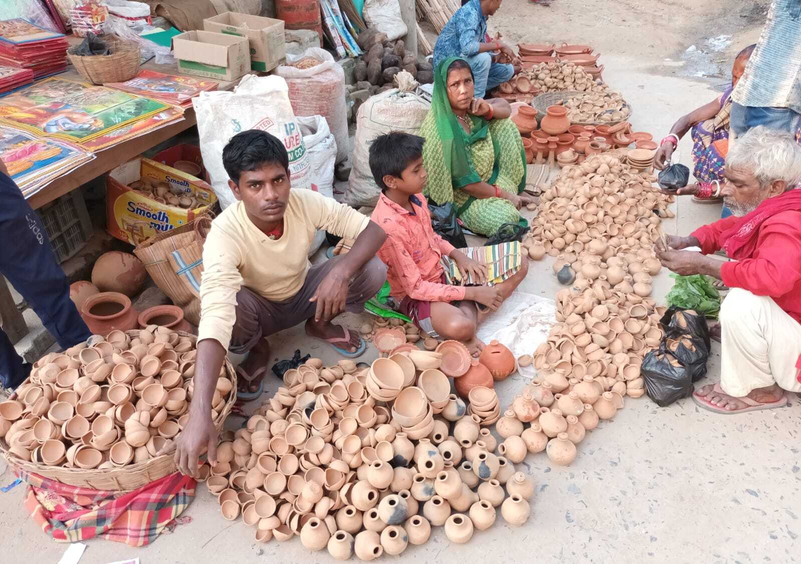दीपावली में होने वाली कमाई पर भी लगने लगा है ग्रहण पतरघट. मिट्टी के बर्तन, दीप, ढिबरी बनाने के लिए अपने पुश्तैनी धंधे से जुड़े कुम्हार जाति के लोगों को बाजारवाद की होड़ में इन दिनों चाइनीज सामानों से कड़ा मुकाबला करना पड़ रहा है. दशहरा, दीपावली, छठ पूजा सहित विभिन्न धार्मिक आयोजन व शादी समारोह के लिए उपयोगी सामानों को बनाकर अपने परिवार का भरण-पोषण करने वाले कुंभकारों को बाजार में चाइनीज आइटमों के उपलब्ध रहने से भारी परेशानी का सामना करना पड़ रहा है. पहले दीपावली में सभी लोग मिट्टी के दीये जलाते थे. जिसके कारण कुंभकारों का जीवन बड़े आराम से चलता था. मांग कम होने से अब हालात ऐसे हो गये हैं कि साल में कम से कम एक बार दीपावली में होने वाली कमाई पर भी ग्रहण लगने लगा है. इधर हाल के दिनों से मोमबत्ती जलाने के साथ साथ ज्यादातर लोग चाइनीज इलेक्ट्रॉनिक सामानों से अपने घरों को सजाते हैं. बाजारों में चाइनीज सामान सस्तीं व खबसूरत होने के कारण खरीद तो लेते हैं, लेकिन इसके दुष्प्रभाव से अंजान बने रहते हैं. चाइनीज आइटमों की तुलना में देसी कलाकारों द्वारा मिट्टी से बनाये गये खिलौने और मूर्तियों की अब डिमांड काफी कम हो गयी है. मिट्टी के खिलौने के साथ-साथ दीप, कड़ाही, धूपदानी, घड़ा, सुराही सहित अन्य सामग्री बनाने के लिए एक तो मिट्टी भी अब बहुत मुश्किल से मिलती है ओर अगर मिल भी जाती है तो काफी महंगी तथा ऊंची कीमतों पर खरीदना पड़ता है. जिसके कारण क्षेत्र के सभी कुंभकार परिवारों के समक्ष भुखमरी की समस्या उत्पन्न हो गयी है. कम आय होने से देसी कलाकारों की यह जमात अभी भी गरीबी का दंश झेलने को विवश है. स्थानीय गोपाल प्रजापति, विपिन प्रजापति, नरेश प्रजापति सहित अन्य ने बताया कि मिट्टी की बनीं सामग्री की बाजार में इधर हाल के दिनों में मांग कम होने से हम सबों को बहुत समस्याओं से जूझना पड़ रहा है. इसलिए लाचारी में अब नयी युवा पीढ़ी अपने पुश्तैनी धंधे में जाने के नाम पर ही भड़क जाती है. इस बाबत प्रखंड कुंभकार संघ के प्रखंड अध्यक्ष शिवशंकर प्रजापति ने बताया कि हम सब देसी कलाकार हैं. हम सब विभिन्न धार्मिक एवं सांस्कृतिक उत्सवों के लिए देवी-देवताओं की प्रतिमाओं का निर्माण कार्य करते हैं. लेकिन सरकार के द्वारा हम सबों को कोई सुविधा व सहयोग नहीं दिया जा रहा है. न हीं कोई जनकल्याणकारी योजनाओं का लाभ दिया जा रहा है. सिर्फ मौखिक आश्वासन देकर बहलाने का काम किया जा रहा है.