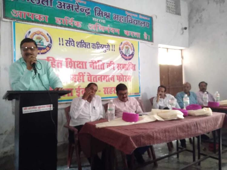 अनुदान नहीं वेतनमान दो फोरम के बैनर तले अनुदानित शिक्षण संस्थानों के शिक्षकों ने की बैठक सहरसा. वित्त अनुदानित शिक्षण संस्थानों के शिक्षकों की बैठक अनुदान नहीं वेतनमान दो फोरम के बैनर तले बुधवार को आयोजित की गयी. प्रेमलता अमfरेंद्र मिश्र महाविद्यालय के प्राचार्य उमेश प्रसाद सिंह की अध्यक्षता में आयोजित बैठक को संबोधित करते फोरम प्रदेश संयोजक रौशन कुमार सिंह ने कहा कि हम लोग सरकार व प्रतिनिधियों से ठगाते आ रहे हैं. वे राजनीति करते हैं, लेकिन आप तो बच्चों को राजनीति पढ़ाते हैं. अब हमारी रणनीति तय है. पटना पहुंचकर ऐसा माहौल बनायें कि सरकार सोचने पर मजबूर हो जाये. अनुदान की नीति उलझाने की राजनीति है. हमारे शिक्षक नेता कहते हैं नीतीश जी को सोचने का समय नहीं है. लेकिन कैबिनेट का निर्णय हो रहा है व अन्य विभागों को राशि दी जा रही है. लेकिन हमें भरमाया जाता है. हाजीपुर से आए प्रो रंजीत कुमार ने कहा कि हमारे साथ भेदभाव हो रहा है. सरकार हमारी उपेक्षा कर रही है. अभी भी हम 60 हजार कार्यरत कर्मी हैं व 40 हजार शिक्षक अवकाश प्राप्त हैं. जिनका अनुदान बकाया है. इनके परिवार व संबंधियों का वोट काफी मायने रखेगा. प्रेम शंकर ने कहा कि हम अपने अभिभावकों को सुविधा नहीं दे सके. परिवार व बच्चे भी आर्थिक तंगी से प्रभावित हो गये. सरकार की इस नीति ने तीन पीढ़ियों को बर्बाद किया. प्रो विजय शंकर प्रसाद ने कहा कि अनुदान नीति की कभी समीक्षा नहीं की गयी. नियोजित शिक्षक अधिकांश हमारे संस्थाओं के पढ़ाए हुए हैं. हमें खुशी है कि उन्हें अच्छा वेतनमान मिल रहा है. लेकिन सरकार हमें भी वही सम्मान दे. प्रो अजय कुमार वर्मा के संचालन में चले कार्यक्रम को मो जियाउद्दीन, प्रो दिलीप कुमार ठाकुर, डॉ अरविंद कुमार झा, डॉ दीपक कुमार सिंह, सुशील कुमार यादव, भूपेंद्र प्रसाद यादव, शंभू कुमार, गणेश कुमार, अशोक कुमार राय, भुवनेश्वर प्रसाद सिंह, मो समीउल्लाह, राकेश कुमार सिंह, अश्विनी कुमार झा, सत्यनारायण कुमार, अजय कुमार, रंजीत कुमार झा सहित अन्य ने संबोधित किया. धन्यवाद ज्ञापन प्रो मंत्रेश्वर झा ने करते संगठन को मजबूत करने व पटना के आंदोलन को सफल बनाने की बात कही.