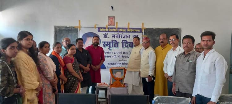 महान साहित्यकार डॉ मनोरंजन झा की 17वीं पुण्यतिथि पर समारोह आयोजित सहरसा . महान शिक्षाविद्, राजनीतिक सलाहकार, बहुआयामी व्यक्तित्व के धनी, कालजयी रचनाओं के लेखक सदाबहार डॉ मनोरंजन झा की 17वीं पुण्यतिथि गुरुवार को पीजी सेंटर पश्चिमी परिसर में समारोहपूर्वक आयोजित की गयी. पीजी सेंटर के मैथिली विभागाध्यक्ष डॉ रमण कुमार चौधरी की अध्यक्षता एवं डॉ अरुण कुमार सिंह के संचालन में संपन्न कार्यक्रम का उद्घाटन प्रो डॉ कुलानंद झा, डॉ रामनरेश सिंह, डॉ जैनेंद्र कुमार, प्रो लाला प्रवीण व सत्य प्रकाश ने संयुक्त रूप से दीप प्रज्वलित कर किया. वहीं उनके तैलीय चित्र पर पुष्पांजलि अर्पित कर श्रद्धापूर्वक नमन किया. कार्यक्रम की शुरुआत मैथिली विभाग की छात्राओं द्वारा गोसाउनिक गीत जय जय भैरवी से की गयी. मुख्य अतिथि पूर्व सिंडीकेट सदस्य डॉ कुलानंद झा ने कहा कि सामाजिक चेतना एवं समरसता के प्रतीक महान साहित्यकार, निडर, साहसिक व ओजस्वी वक्ता डॉ मनोरंजन बाबू विश्वविद्यालय के साहित्यिक अंचल में काफी लोकप्रिय रहे. विश्वविद्यालय सीनेट के संस्थापक अध्यक्ष हुए. उन्होंने छात्र, शिक्षक, कर्मचारियों के हित के लिए अपना संपूर्ण जीवन समर्पित कर उनके आवाज के लिए संघर्षरत रहे. उनके व्यक्तित्व में क्षेत्रीयता व संकीर्णता का नामोनिशान नहीं था. डॉ मनोरंजन बाबू के नाम पर विश्वविद्यालय में चेयर स्थापना व आदमकद प्रतिमा लगाने का प्रस्ताव पारित होने के बावजूद इसे ठंडा बस्ते में डाल दिया गया. उन्होंने इसे शीघ्र स्थापित किये जाने की मांग की. उन्होंने कहा कि पीजी सेंटर की स्थापना के लिए वे व मनोरंजन बाबू दोनों ने कठिन संघर्ष कर इसे बचाया. आज इसे फिर से समाप्त करने की साजिश चल रही है. डॉ रामनरेश सिंह ने कहा कि इनके वाणी की उग्रता में धर्म, कर्म व समाज के प्रति प्रेम का लगाव परिलक्षित होता रहा. उन्होंने अपनी रचनाओं के माध्यम से किसान, मजदूर, मैथिली भाषा व गरीब मजदूरों की वेदना को उजागर किया. प्रो लाला प्रवीण ने कहा कि डॉ मनोरंजन झा मिथिला के धरोहर हैं. समाज के लिए इन्होंने बहुत कुछ किया. अब समाज को भी उनके कृतित्व का स्मरण उनके अधूरे कार्यों को पूरा करने का संकल्प लेना है. सिंडिकेट सदस्य प्रो गौतम कुमार ने कहा कि वे शिक्षक व महान साहित्यकार रहने के बावजूद सामाजिक कार्यों में अग्रणीय भूमिका निभाते थे. समाज के हर कार्य को लेकर वे समय पर मौजूद रहते थे. किसलय कृष्ण ने भाषा आंदोलन के प्रति किये गये रचनात्मक रचनाओं का जिक्र करते उन्हें महान भाषा साहित्य पुरोधा कहा. वहीं जैनेंद्र कुमार, राजन आनंद, उदय कुमार, सिद्धेश्वर कश्यप, रविंद्र कुमार झा फूल बाबू, डॉ अनिल कुमार, सर्व नारायण सिंह, अजय कुमार सिंह बबलू, डॉ संजय वशिष्ट, डॉ अभय कुमार 