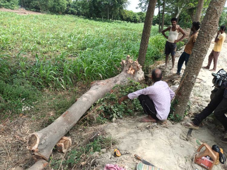 नहरों पर पूर्व से लगे हुए विशाल वृक्षों को जड़ से उखाड़ देने के बाद ग्रामीणों ने व्यापारी को बेचा पतरघट. जल संसाधन विभाग द्वारा इन दिनों विभागीय स्तर से करवाये जा रहे नहरों के ऊंचीकरण, चौड़ीकरण तथा मजबूती करण के दौरान नहरों पर पूर्व से लगे हुए विशाल वृक्षों को जड़ से उखाड़ दिए जाने के कारण दर्जनों पेड़ पौधे को कुछ स्थानीय ग्रामीणों द्वारा लकड़ी व्यापारी के हाथों बेच दिए जाने का मामला सामने आया है. मामले ने तब तूल पकड़ा, जब वन विभाग को सूचना दिए जाने बगैर जल संसाधन विभाग की बड़ी-बड़ी हाइवा मशीन द्वारा नहरों की साफ-सफाई के दौरान पतरघट, लक्ष्मीपुर नहर पर लगे हुए विशाल वृक्षों को जड़ से उखाड़ दिया तथा नहर किनारे खेत में फेंक दिया. जिसका फायदा उठाकर पतरघट सहित आसपास के कुछ स्थानीय ग्रामीणों द्वारा एक स्थानीय लकड़ी व्यापारी के हाथों बेच दिए जाने का मामला सामने आया. जिसके बाद मामले ने तूल पकड़ लिया तथा हो हंगामा शुरू कर कुछ को रात के अंधेरे में उठा लिया गया. जबकि कुछ लकड़ी को विभाग के वनरक्षी द्वारा जब्त कर लिया गया. इस बाबत वनरक्षी सतीश कुमार ने बताया कि नहरों की साफ-सफाई के दौरान दर्जनों शीशम, सागौन, जिलेबी के हरे भरे वृक्षों को हाइवा मशीन से चालक द्वारा यत्र तत्र उखाड़ दिया गया. जिसकी सूचना उसके द्वारा वन विभाग को नहीं दी गयी थी. उन्होंने बताया कि हमें जब इसकी सूचना मिली तो हम लगभग तीन घंटे तक काम को रोक दिया. जिसके बाद विभागीय अधिकारियों के द्वारा हस्तक्षेप कर काम को फिर से दुबारा शुरू करवाया गया. उन्होंने बताया कि ध्वस्त हुए वृक्षों के बचें हुए शेष भाग को उन्होंने अपने पास सुरक्षित रख लिया है.