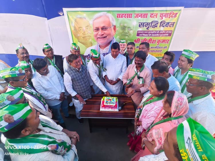 सहरसा . जनता दल यूनाइटेड जिलाध्यक्ष चंद्रदेव मुखिया ने अपने जिला कमेटी एवं वरिष्ठ साथियों के साथ रविवार को पार्टी के राष्ट्रीय अध्यक्ष एवं बिहार के मुख्यमंत्री नीतीश कुमार का 75वां जन्म दिवस सराही पासवान टोला में संगठन के जिला निर्वाची पदाधिकारी दिनेश पासवान के आवासीय परिसर में समृद्धि दिवस के रूप में मनाया. इस अवसर पर उनके 75 वर्ष के आयु के पूर्णता पर 75 दीप प्रज्ज्वलित कर नीतीश कुमार के दीर्घायु जीवन की मंगल कामना की गयी. मौके पर मधेपुरा सांसद दिनेश चंद्र यादव ने कहा कि समृद्धि के बीस साल में नीतीश कुमार ने राज्य के आधार भूत संरचना को तो मजबूत किया ही. साथ ही उन्होंने सबका सम्मान एवं जीवन आसान का एक मिसाल कायम किया. उनके दूरदर्शी सोच से राज्य के विकास के साथ समाज का बहुत भला हुआ है. लोगों को आज विकास एवं समृद्धि के प्रति रुचि बढ़ रही है. यही कारण है कि वर्ष 2025 के बिहार विधान सभा चुनाव में उनके नेतृत्व को प्रचंड बहुमत मिला. अब मुख्यमंत्री बहुत बड़ी जिम्मेदारी के साथ राज्य को विकसित राज्य के पथ पर आगे बढ़ा रहे हैं. पूर्व विधायक अरुण कुमार ने कहा कि नीतीश कुमार राज्य की आवश्यकता हैं. आज समाज के अंतिम पायदान पर रहने वाले व्यक्ति भी कहते हैं कि नीतीश हैं तो निश्चिंत हैं. जिलाध्यक्ष चंद्रदेव मुखिया ने कहा कि मुख्यमंत्री हमारे दल के ही नेता नहीं हैं, बल्कि सुचिता एवं समृद्धि के प्रणेता भी हैं. यही कारण है कि उनके द्वारा लोकहित में किये गये कार्य को अन्य राज्य भी अनुसरण कर रहा है. इस अवसर पर जदयू के वरिष्ठ नेता आनंदी प्रसाद मेहता, प्रो हरिनारायण यादव, दिनेश पासवान, महेंद्र शर्मा, सोहन झा, भरत राय, सुशील यादव, डॉ लुतफुल्लाह, मोहिउद्दीन राईन, शैलेंद्र शेखर, अक्षय झा, रणवीर यादव, बिजेंद्र शर्मा, उपेंद्र सिंह कुशवाहा, कैलाश साह, विनोद कुमार मंडल, दिलीप साह, राजेंदर साह, निशा पांडे, रेणु झा, सीमा गुप्ता, वार्ड पार्षद अनुप्रिया यादव, गणेश शर्मा, ललन यादव, बिपिन गुप्ता, कैलाश प्रसाद साह, प्रहलाद रमण, राजेश रमण, कुश मोदी, संजीव सिंह, अभिषेक रिक्की उर्फ बाबू सहित अन्य कार्यकर्ता मौजूद थे.