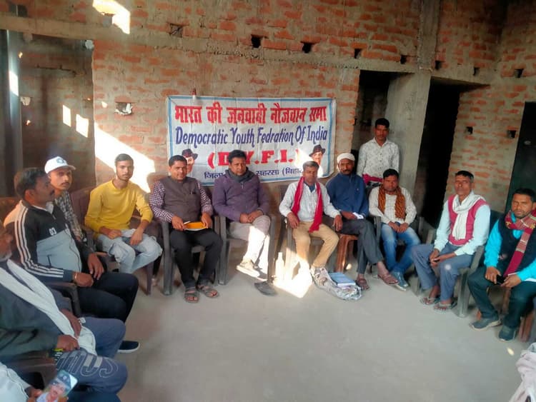 सहरसा. भारत की जनवादी नौजवान सभा की जिला स्तरीय बैठक बुधवार को सीपीएम पार्टी कार्यालय में मनोज शर्मा की अध्यक्षता में की गयी. बैठक में नौजवान सभा जिला सचिव कुलानंद कुमार ने पिछले कामों की रिपोर्ट पेश की. बैठक को संबोधित करते नौजवान सभा के राज्य सचिव रजनीश कुमार ने कहा कि बिहार के डबल इंजन सरकार हर मोर्चे पर फेल है. बेरोजगारी, लूट, हत्या, दुष्कर्म जैसी घटनाओं में बेतहाशा वृद्धि हुई है. भाजपा सरकार के आगे नीतीश कुमार नतमस्तक हैं. बिहार से लाखों लोग हर दिन दूसरे प्रदेश के लिए पलायन कर रहे हैं. वहीं नौजवान सभा के जिला सचिव कुलानंद कुमार ने कहा कि हमारा देश नौजवानों का देश है. फिर भी आजादी 77 वर्ष बीत जाने के बाद भी आज किसान व नौजवान सरकार की गलत नीतियों के कारण आत्महत्या कर रहे हैं. जब से केंद्र में एनडीए के सरकार आयी है, तब से और तेजी बेरोजगारी बढ़ी है. सभी सरकारी संस्थाओं में लगे लोगों के नाम की छंटनी जारी है. ऐसी सरकार के खिलाफ डीवाईएफआई के बैनर तले नौजवानों को गोलबंद कर बड़े आंदोलन करने का शंखनाद किया. मौके पर ब्रजेश वामपंथी, मनोज शर्मा, रजनीश कुमार, सनोज पासवान पंकज पासवान, अरविन्द सादा, पंकज सिंह, दिलीप शर्मा, राहुल कुमार, साधु शर्मा, मनोरंजन कुमार सहित अन्य मौजूद थे.