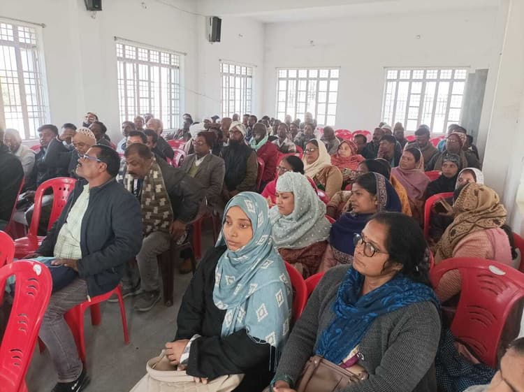 महिषी. प्रखंड मुख्यालय स्थित बीआरसी भवन के सभागार में डीपीओ माध्यमिक शिक्षा व साक्षरता शालिनी जागृति व साक्षरता के स्टेट रिसोर्स श्याम किशोर ने टोला सेवकों, तालिमी मरकज व विद्यालय प्रधान के साथ बैठक की. अधिकारी द्वय ने ई शिक्षा पोर्टल पर मोबाइल पर उपस्थिति की समीक्षा करते पोषण क्षेत्र के बच्चों को प्रतिदिन विद्यालय लाने, वर्ष 2024-25 में 6 से चौदह आयु वर्ग के बच्चों को विद्यालय में नामांकन कराने, अभिभावकों से नियमित संपर्क करने सहित कोचिंग क्लास संचालन की समीक्षा करते पहल का निर्देश दिया. फोटो – सहरसा 24 – बैठक में मौजूद लोग.