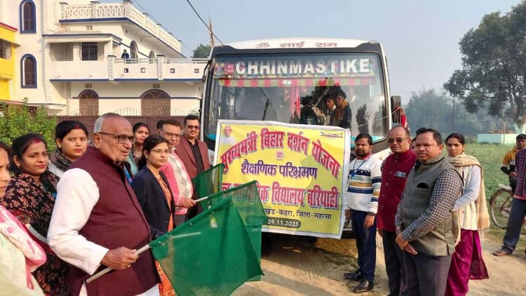 सहरसा. जिले के उच्च माध्यमिक विद्यालय बरियाही रहुआमणि के बच्चों का मुख्यमंत्री बिहार दर्शन योजना के तहत शैक्षणिक परिभ्रमण दल रवाना हुआ. दल को प्रखंड विकास पदाधिकारी कहरा अभिलाषा पाठक, अखिल भारतीय प्राथमिक शिक्षक संघ के सेंट्रल जोन के अध्यक्ष व जिला प्राथमिक शिक्षक संघ के प्रधान सचिव नुनुमणि सिंह, उच्च माध्यमिक विद्यालय के प्रधानाध्यापक रोशन कुमार चौधरी, मध्य विद्यालय के प्रधानाध्यापक प्रसून रंजन सिंह ने झंडा दिखाकर विदा किया. इस मौके पर प्रखंड विकास पदाधिकारी कहरा ने कहा कि मुख्यमंत्री बिहार दर्शन योजना के तहत परिभ्रमण से बच्चों में व्यवहारिक ज्ञान, बच्चों को नये अनुभव, समूह में रहने, टीमवर्क, संवाद कौशल, नये स्थान व परिस्थितियों का सामना करने, प्रकृति, जीव जंतु, भौगोलिक व ऐतिहासिक स्थल को नजदीक से देखने का अवसर, नयी चीज देखने से प्रश्न पूछने सीखने की उत्सुकता बढ़ती है. उन्होंने कहा कि परिभ्रमण केवल मनोरंजन नहीं बल्कि संपूर्ण विकास का एक आवश्यक भाग है. परिभ्रमण दल में विद्यालय अध्यापक रजनीश कुमार, संध्या कुमारी, सविता कुमारी, अलका कुमारी, सुभद्रा कुमारी शामिल हैं. इस अवसर पर विद्यालय परिवार के सभी शिक्षक शिक्षिकाएं मौजूद थे.