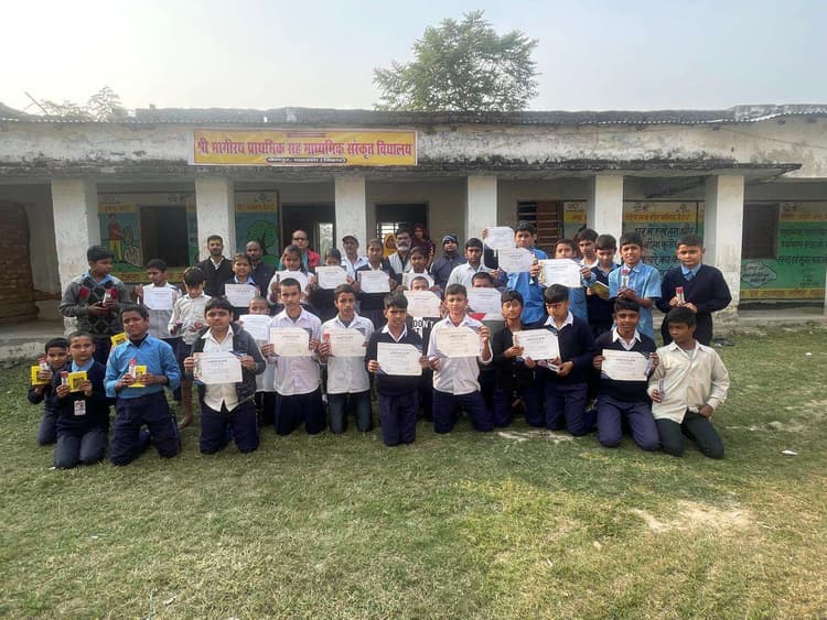 संस्कृत विद्यालय में हुआ कार्यक्रम, सफल बच्चों को किया गया सम्मानित सहरसा. जिले के कहरा प्रखंड के श्री भागीरथ प्राथमिक सह माध्यमिक संस्कृत विद्यालय चैनपुर में गीता जयंती के अवसर पर विद्यालय में छात्र-छात्राओं के बीच गीता प्रतियोगगिता, गीता श्लोक की व्याख्या, गीता का जीवन पर प्रभाव, छात्र भाषण व गीता आधारित प्रश्नोत्तरी का कार्यक्रम आयोजित किया गया. कार्यक्रम विद्यालय सचिव सुंदरकांत ठाकुर की अध्यक्षता में आयोजित किया गया. इस मौके पर सचिव श्री ठाकुर व प्रधानाध्यापक उमेश कुमार ने गीता के महत्व का प्रतिपादन किया एवं छात्रों से अनुरोध किया कि गीता के दर्शन को अपने जीवन में अपनाएं. उन्होंने कहा कि विश्व में सर्वाधिक भाषा में अनुवादित धर्मग्रंथ गीता है, जो यह प्रमाणित करता है कि गीता धर्मग्रथ ही नहीं अपितु जीवन दर्शन-ग्रंथ भी है. जिसके बाद विद्यालय में मौजूद सभी शिक्षक ने गीता के महत्व पर व्याख्यान दिया. छात्रों द्वारा सस्वर गीता पाठ किया गया. विद्यालय सचिव ने गीता प्रतियोगिता में शामिल प्रतिभागीयों को पुरस्कृत किया. मौके पर विद्यालय परिवार के आचार्य शारदाकांत झा, सहायक शिक्षक रंजीत कुमार झा, आचार्य गौतम कुमार पाठक, रीतेश कुमार ठाकुर, मृत्युंजय दत्त , लिपिक विजय कुमार मिश्र, आदेशपाल सुनील कामत रुबी देवी, रंजू देवी, मोहन ठाकुर, प्रवीण झा, शंभु ठाकुर, अरुण झा, विमलकांत झा, रविंद्र झा सहित अन्य सैकड़ो ग्रामीण मौजूद थे.