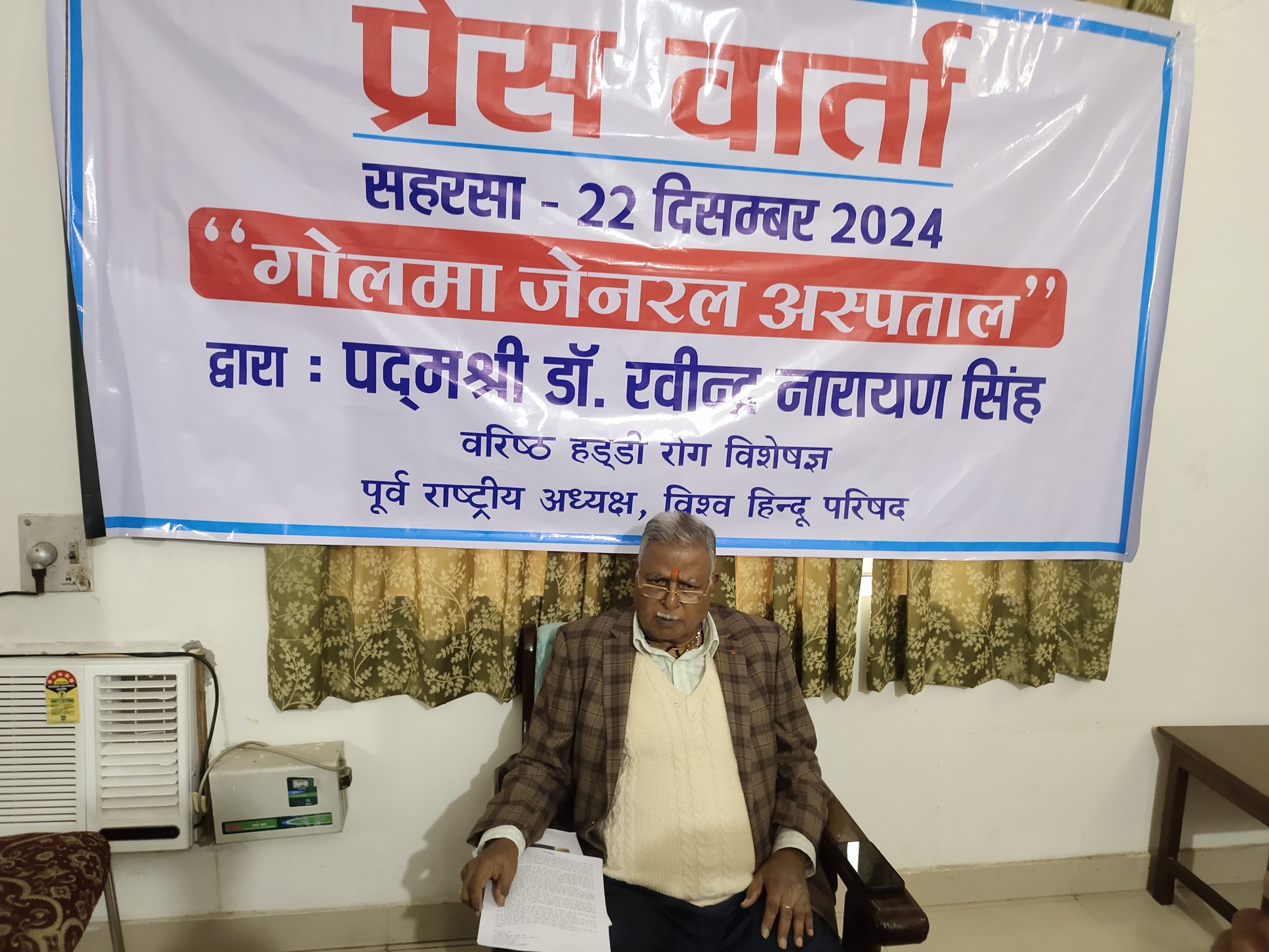 राज्यपाल, मुख्यमंत्री, स्वास्थ्य मंत्री से मिलकर दिया सुझाव स्वीकृति मिलने पर जिले के दक्षिण के लोगों के लिए वरदान साबित होगा गोलमा मेडिकल काॅलेज सहरसा . जाने माने चिकित्सक सह राधा वल्लभ मेडिकल फाउंडेशन ट्रस्ट के प्रधान ट्रस्टी पद्मश्री डॉ आरएन सिंह ने पूरब बाजार स्थित एक निजी होटल के सभागार में मीडिया प्रतिनिधियों से वार्ता की. उन्होंने कहा कि राज्य सरकार प्रत्येक जिले में मेडिकल कॉलेज खोलना चाह रही है. इसके लिए सहरसा जिले में भी मेडिकल काॅलेज खोलने की स्वीकृति दी गयी है. जिसे देखते उन्होंने सरकार से आग्रह किया है कि गोलमा गांव स्थित उनके गोलमा मेडिकल कॉलेज को वे सरकार को दान स्वरूप दे देंगे. सरकार को वे 20 एकड जमीन के साथ तैयार इंफ्रास्ट्रक्चर दान देने के लिए तैयार हैं. उन्होंने 2011 से कार्यरत गोलमा जेनरल अस्पताल के बारे में बताते कहा कि यहां नियमित रूप से प्रतिदिन क्लिनिक के अलावे सप्ताह में एक बार वरिष्ठ नेत्र रोग विशेषज्ञ डॉ मिथिलेश कुमार अपनी सेवा देते हैं. महीने में एक बार वे अपने सहयोगियों के साथ रोगियों को निशुल्क चिकित्सा सेवा प्रदान करते हैं. समय-समय पर मेडिकल कैंप करना व लांंयस नेत्रालय पटना द्वारा गोलमा के दोनों पंचायत में घर-घर जाकर क्षेत्र परीक्षण करना व पटना ले जाकर मोतियाबिंद के ऑपरेशन की व्यवस्था करना विगत 13 साल से होता आ रहा है. उन्होंने कहा कि अपने ग्रामवासियों को भारत सरकार द्वारा पद्मश्री से सम्मानित होने के बाद गोलमा व पास के इलाकों के लिए स्वास्थ्य सेवा देने का आश्वासन दिया था. उस आलोक में उन्होंने अस्पताल के इर्द-गिर्द 20 एकड़ जमीन अर्जित कर मेडिकल कॉलेज खोलने का सपना देखा. इस बीच में पटना में एक कैंसर अस्पताल, सबेरा के निर्माण में व्यस्त हो गया व विश्व हिन्दू परिषद के राष्ट्रीय अध्यक्ष बनने के बाद अपनी व्यस्तता एवं कोरोना काल की परेशानियों के कारण गोलमा के इस परियोजना पर कम ध्यान दे सका. इस बीच में करीब 1.5 लाख स्क्वायर फीट पर निर्माण तो हो गया है. सुचारू रूप से मेडिकल कॉलेज की स्थापना के काम में विस्तार नहीं हो पा रहा है. भू-अर्जन से लेकर आज तक के निर्माण में किसी भी प्रकार का ऋण नहीं हैं. उम्र की इस दहलीज पर वे अपनी व्यस्तताओं एवं डॉक्टरी सेवा के कारण मेडिकल कॉलेज के निर्माण में अपने आपको अकेला पा रहा हैं. इसलिए उन्होंने हरेक बिंदू पर विचार करते हुए राधा वल्लभ मेडिकल फाउंडेशन ट्रस्ट द्वारा अर्जित 20 एकड़ जमीन एवं निर्मित भवन बिहार सरकार को सौंपने का निर्णय लिया. इस संदर्भ में स्वास्थ्य मंत्री एवं मुख्यमंत्री से मिलकर अपना प्रतिवेदन दे दिया है. इसके लिए स्थानीय विधायक के साथ सरकार में मंत्री रत्नेश सादा को भी अपना प्रतिवेदन दिया है. उन्होंने कहा कि 