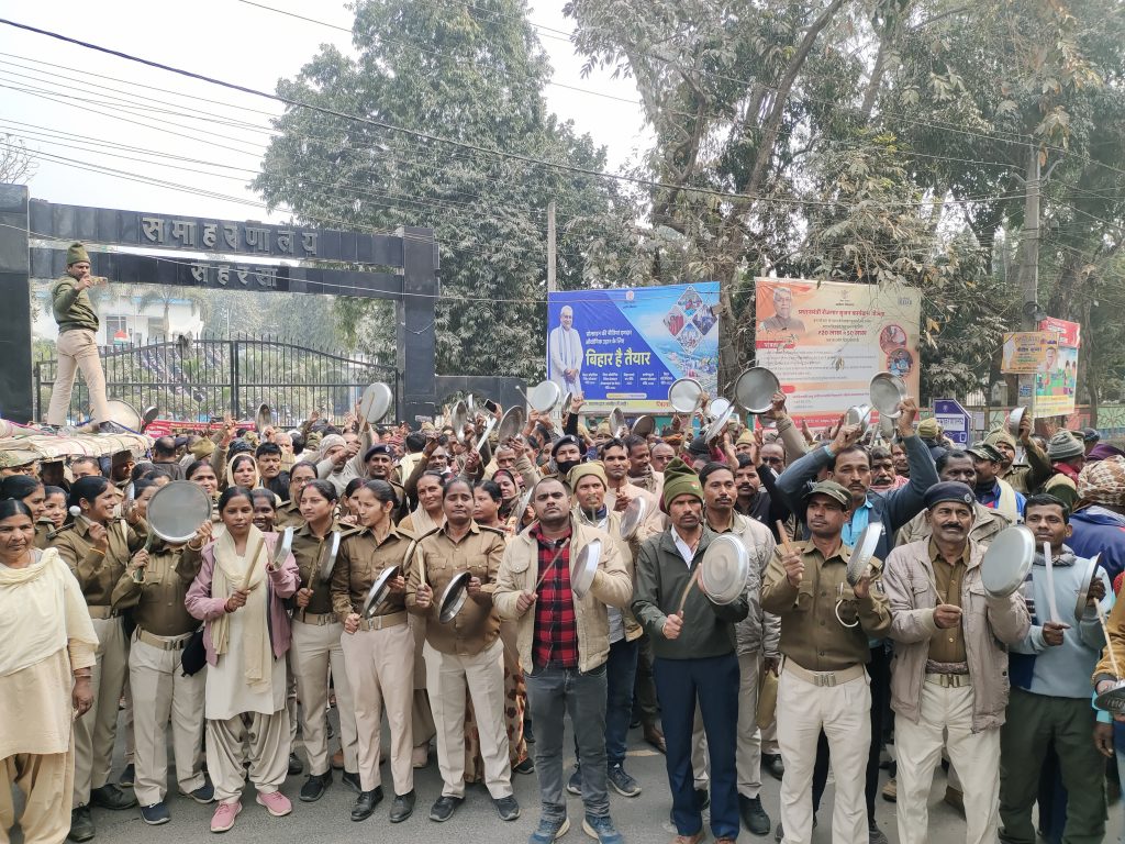 थाली पीटकर गृह रक्षकों ने किया प्रदर्शनथाली पीटकर गृह रक्षकों ने किया प्रदर्शन