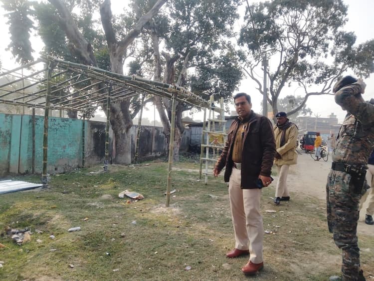 सिमरी बख्तियारपुर. बख्तियारपुर थाना के बगल में बुधवार को चहारदीवारी से सटे हो रहे अवैध निर्माण को लेकर एसडीपीओ मुकेश कुमार ठाकुर ने निर्माण कार्य पर रोक लगाते हुए अविलंब अवैध निर्माण को हटाने का निर्देश दिया. मिली जानकारी के अनुसार, थाना के मुख्य द्वार से सटे चहारदीवारी की खाली जमीन पर बांस बल्ले व चदरा देकर अवैध निर्माण कराया जा रहा था. तभी बख्तियारपुर थाना पहुंच रहे एसडीपीओ मुकेश कुमार ठाकुर की नजर निर्माण कार्य पर पड़ी. उन्होंने अपने गाड़ी के चालक को गाड़ी रोकने का इशारा किया. इसके बाद गाड़ी से उतर कर एसडीपीओ ने निर्माण कार्य को अविलंब रोकने और उसे हटाने का निर्देश दिया. एसडीपीओ ने कहा कि थाना की जमीन पर बने अन्य दुकानों को भी अविलंब हटाए जाने का मौजूद पदाधिकारी को निर्देश दिया. उन्होंने कहा कि किसी भी सूरत में थाना के मुख्य द्वार से सटे खाली जमीन पर किसी भी प्रकार का अवैध निर्माण कार्य कराया जाना बर्दाश्त नहीं किया जायेगा. फोटो – सहरसा 16 – अवैध निर्माण कार्य हटवाते एसडीपीओ