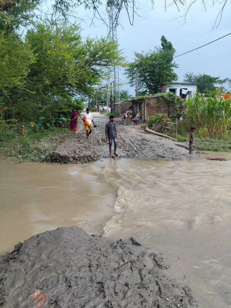 बिरजैन गांव से महुआ चाही तक जाने वाली निर्माणाधीन मुख्यमंत्री सड़क को कोसी ने काटा नवहट्टा कोसी पूर्वी एवं पश्चिमी तटबंध के बीच स्थित सत्तौर पंचायत के बिरजैन गांव से डरहार पंचायत के महुआ चाही तक जाने वाली निर्माणाधीन मुख्यमंत्री सड़क को कोसी नदी ने काट दिया है. इस सड़क के टूट जाने से आसपास की कई पंचायतों की लगभग 25 हजार की आबादी का सड़क मार्ग से संपर्क पूरी तरह अवरुद्ध हो गया है. मिली जानकारी के अनुसार मंगलवार को कोसी नदी के जलस्तर में मामूली वृद्धि हुई, जिसके बाद नदी ने रसलपुर गांव स्थित टावर के पास मुख्यमंत्री सड़क को तोड़ डाला. इस कारण क्षेत्र का आवागमन पूरी तरह ठप हो गया है. स्थानीय लोगों ने बताया कि बिरजैन गांव से महुआ चाही तक बन रही यह मुख्यमंत्री सड़क पहले से ही निर्माणाधीन है. सड़क निर्माण कार्य में संवेदक द्वारा ऊंचाई बढ़ाने की अनदेखी की गयी थी, जिससे नदी का पानी सीधे सड़क के ऊपर से बहने लगा और सड़क को पूरी तरह क्षतिग्रस्त कर दिया. रसलपुर निवासी सुजीत कुमार ने बताया कि स्थानीय ग्रामीणों ने कई बार संबंधित संवेदक एवं आरईओ के अभियंता से मिलकर सड़क की ऊंचाई बढ़ाने की मांग की थी, लेकिन किसी ने इस ओर गंभीरता नहीं दिखाई. संवेदक ने अभियंता की सहमति से सड़क की ऊंचाई नहीं बढ़ाई, जिसका खामियाजा आज आम जनता को भुगतना पड़ रहा है. ग्रामीणों ने जिला प्रशासन से मांग की है कि इस सड़क की शीघ्र मरम्मत कर आवागमन को बहाल किया जाए एवं संवेदक और संबंधित अधिकारियों के विरुद्ध कार्रवाई की जाए, ताकि भविष्य में इस तरह की लापरवाही न हो. …………………………………………………………………………………………. कोसी के कहर से रसलपुर में मची अफरा-तफरी कटाव की जद में सैकड़ों परिवार और सड़क योजना नवहट्टा कोसी नदी का जलस्तर पिछले चार दिनों से लगातार घटते-बढ़ते क्रम में रिकॉर्ड दर्ज कर रहा है. बुधवार को दोपहर दो बजे कोसी नदी में पानी का डिस्चार्ज 1 लाख 71 हजार क्यूसेक दर्ज किया गया. जलस्तर में उतार-चढ़ाव के बीच कोसी पूर्वी तटबंध के अंदर प्रखंड के नौला पंचायत अंतर्गत रसलपुर वार्ड नंबर 14 में कटाव ने विकराल रूप धारण कर लिया है. कटाव की चपेट में अब सैकड़ों परिवारों का बसा मोहल्ला और मुख्यमंत्री ग्राम सड़क योजना की सड़क आ चुकी है. स्थानीय लोगों का कहना है कि कटाव लगातार आगे बढ़ रहा है और किसी भी समय बड़ी तबाही मचा सकती है. इस गंभीर स्थिति के बीच जल संसाधन विभाग और पथ निर्माण विभाग के बीच जिम्मेदारी को लेकर टालमटोल का खेल जारी है. जल संसाधन विभाग का कहना है कि सड़क की सुरक्षा का कार्य पथ निर्माण विभाग करेगा, जबकि पथ निर्माण विभाग जिम्मेदारी जल संसाधन विभाग पर थोप रहा है. विभागों की इस अनदेखी के कारण कटाव का संकट और बढ़ता जा रहा है. स्थानीय युवा पंकज यादव