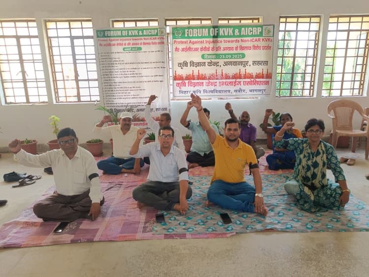 भेदभावपूर्ण नीतियों के खिलाफ शुरू किया गया आंदोलन सत्तरकटैया . भारतीय कृषि अनुसंधान परिषद् नयी दिल्ली व बिहार कृषि विश्वविद्यालय सबौर की भेदभावपूर्ण नीतियों के खिलाफ केवीके के कर्मचारियों का राष्ट्रव्यापी आंदोलन शुरू हो गया है. भारतीय कृषि अनुसंधान परिषद् नयी दिल्ली व बिहार कृषि विश्वविद्यालय सबौर प्रशासन द्वारा मनमाने ढंग से लिए गये निर्णय के विरोध में केवीके व एआईसीआरपी के राष्ट्रीय संगठन के राष्ट्रव्यापी आंदोलन के समर्थन में राष्ट्रीय संगठन के संयोजक व कृषि विज्ञान केंद्र ईम्लपाईज एसोसिएसन के अध्यक्ष डॉ नित्यानंद, वरीय वैज्ञानिक व प्रधान, केवीके सुपौल के आवाहन पर बिहार कृषि विश्वविद्यालय सबौर अंतर्गत संचालित सभी केवीके के सभी कर्मचारियों ने कलमबंद हड़ताल एवं प्रदर्शन किया. जिसका समर्थन 21 राज्यों के प्रतिनिधियों ने किया. बाकी राज्यों में भारतीय कृषि अनुसंधान परिषद् नयी दिल्ली के अधीनस्थ केवीके के अनुरूप समान वेतनमान, पदोन्नति, समान सेवानिवृति आयु एवं सेवानिवृति लाभ जैसे पेंशन, ग्रेच्युटी मिल रही है. कर्मचारी संगठन के अध्यक्ष के अनुसार मुख्य मांग परोदा उच्च स्तरीय समिति की सिफारिशों के अनुरूप वन नेशन वन केवीके, वन पॉलिसी का कार्यान्वयन तथा आईसीएआर अपने अधीनस्थ सीधे संचालित 9 प्रतिशत केवीके को सेवा शर्तों के अनुरूप सुविधा दे रही है. जबकि 91 प्रतिशत राज्य कृषि विश्वविद्यालयों, एनजीओ, राज्य सरकारों और अन्य संस्थानों द्वारा संचालित केवीके कर्मचारियों को 20 अगस्त 2024 को दिए गये आदेश में सेवाशर्तों एवं समान कार्य समान वेतन के विरूद्ध पदोन्नति, सेवानिवृति आयु व सेवानिवृति लाभ का वहन गैर आईसीएआर संचालित संस्थाओं द्वारा अपने स्तर से करने के साथ ही उनके द्वारा पूर्व से दिए जा रहे सभी लाभों से वंचित कर दिया गया. भारतीय कृषि अनुसंधान परिषद्, नयी दिल्ली, जो देश में कृषि अनुसंधान का शीर्ष संगठन पर आरोप है कि सीधे अपने अधीनस्थ कर्मचारियों को तरजीह देते हुए गैर-आईसीएआर नई दिल्ली केवीके कर्मचारियों की बारंबार उल्लेखित समस्याओं की ओर ध्यान आकृष्ट किया गया. उनके द्वारा सौ दिनों में सभी समस्याओं का समाधान 20 अगस्त 24 के विवादित आदेशों की वापसी व आपसी वादा पर भरोसा करते हुए गैर-आईसीएआर के कर्मचारियों ने उनके द्वारा संचालित विकसित कृषि संकल्प अभियान (खरीफ 2025) में भाग लेकर कार्यक्रम को सफल बनाया. जबकि अब तक कोई वादा नहीं पूरा होने की स्थिति में कर्मचारियों को असंतोष और गहरा गया. जिसके विरोध में आईसीएआर द्वारा संचालित होने वाला आगामी प्रस्तावित विकसित कृषि संकल्प अभियान रबी 2025 कार्यक्रम 3-18 अक्तूबर का बहिष्कार करने का निर्णय लिया गया है. जो राष्ट्र विरोधी बहिष्कार नहीं, ब