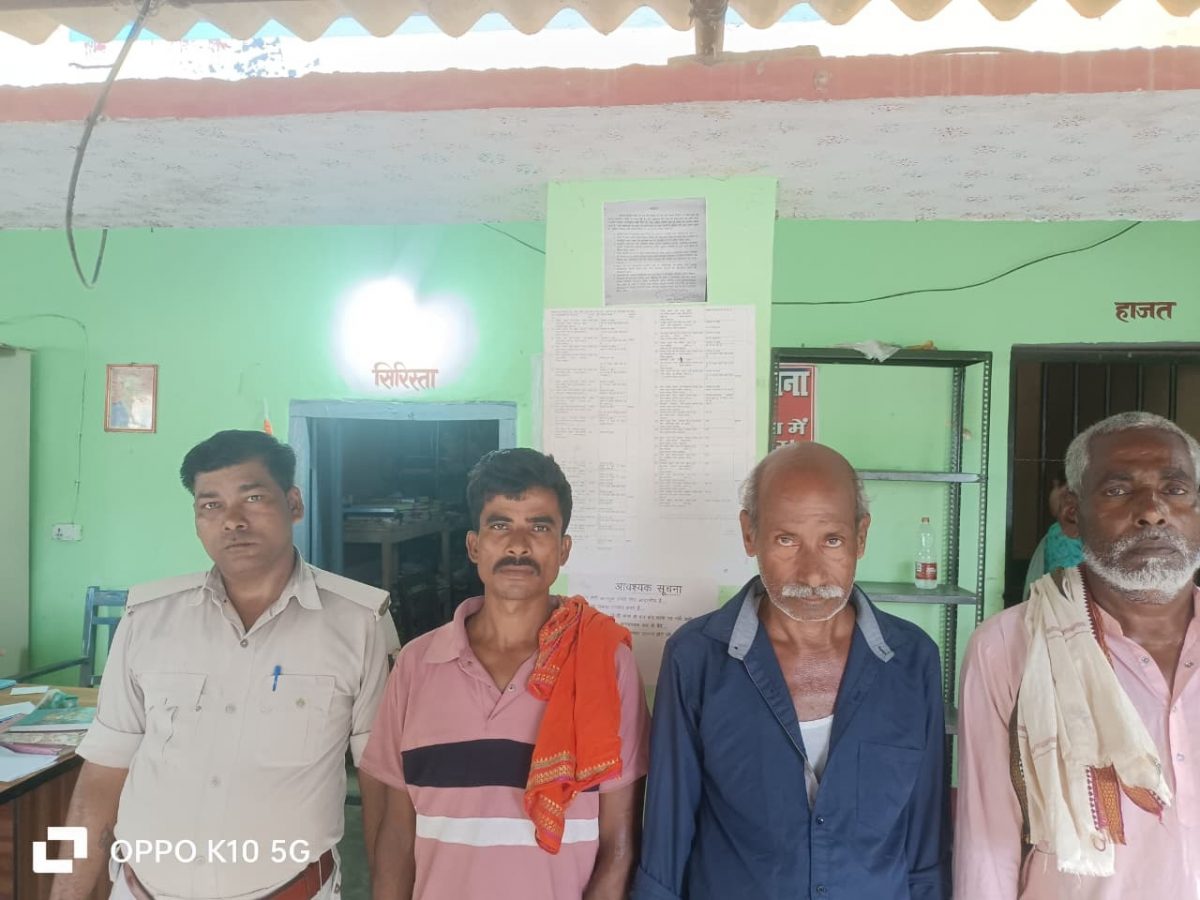 पतरघट. विशेष समकालीन अभियान के तहत गुरुवार को थाना क्षेत्र के विभिन्न हिस्सों में अवैध शराब तस्करों के खिलाफ अपर थाना अध्यक्ष डोली रानी के नेतृत्व में पुलिस बलों ने शराब तस्करों के विभिन्न ठिकानों पर छापेमारी कर शराब तस्करों को गिरफ्तार कर न्यायिक हिरासत में भेज दिया. अपर थाना अध्यक्ष सह प्रभारी थानाध्यक्ष डोली रानी ने बताया कि गुरुवार की रात विशेष समकालीन अभियान के तहत सहायक अवर निरीक्षक विष्णुदेव कुमार मोदी द्वारा पुलिस बल के सहयोग से गोलमा गया भगत चौक से कुख्यात शराब तस्कर मनीष कुमार पिता रमेश साह के घर पर छापेमारी कर 100 एमएल का 7 बोतल कोडिनयुक्त नशीली विसकप सिरप बरामद करते शराब तस्कर मनीष कुमार को गिरफ्तार कर लिया. जबकि पुलिस अवर निरीक्षक दयानंद प्रसाद सिंह ने फरारी कोर्ट वारंटी गोलमा पश्चिम पंचायत स्थित वार्ड 10 के निवासी भरत प्रसाद सिंह, कपसिया बस्ती स्थित वार्ड 14 के निवासी पुटूर सादा, गोलमा पूर्वी पंचायत स्थित सखौड़ी बस्ती स्थित वार्ड 8 के निवासी निवासी तस्लिम मियां को गिरफ्तार कर लिया. अपर थाना अध्यक्ष ने बताया कि सभी गिरफ्तार को शुक्रवार को पुलिस अभिरक्षा में न्यायिक हिरासत में भेजा गया है. पुलिस के द्वारा त्वरित कार्रवाई से अवैध शराब तस्कर, नशेड़ी एवं अपराधी प्रवृत्ति के लोगों के बीच हड़कंप मचा हुआ है.