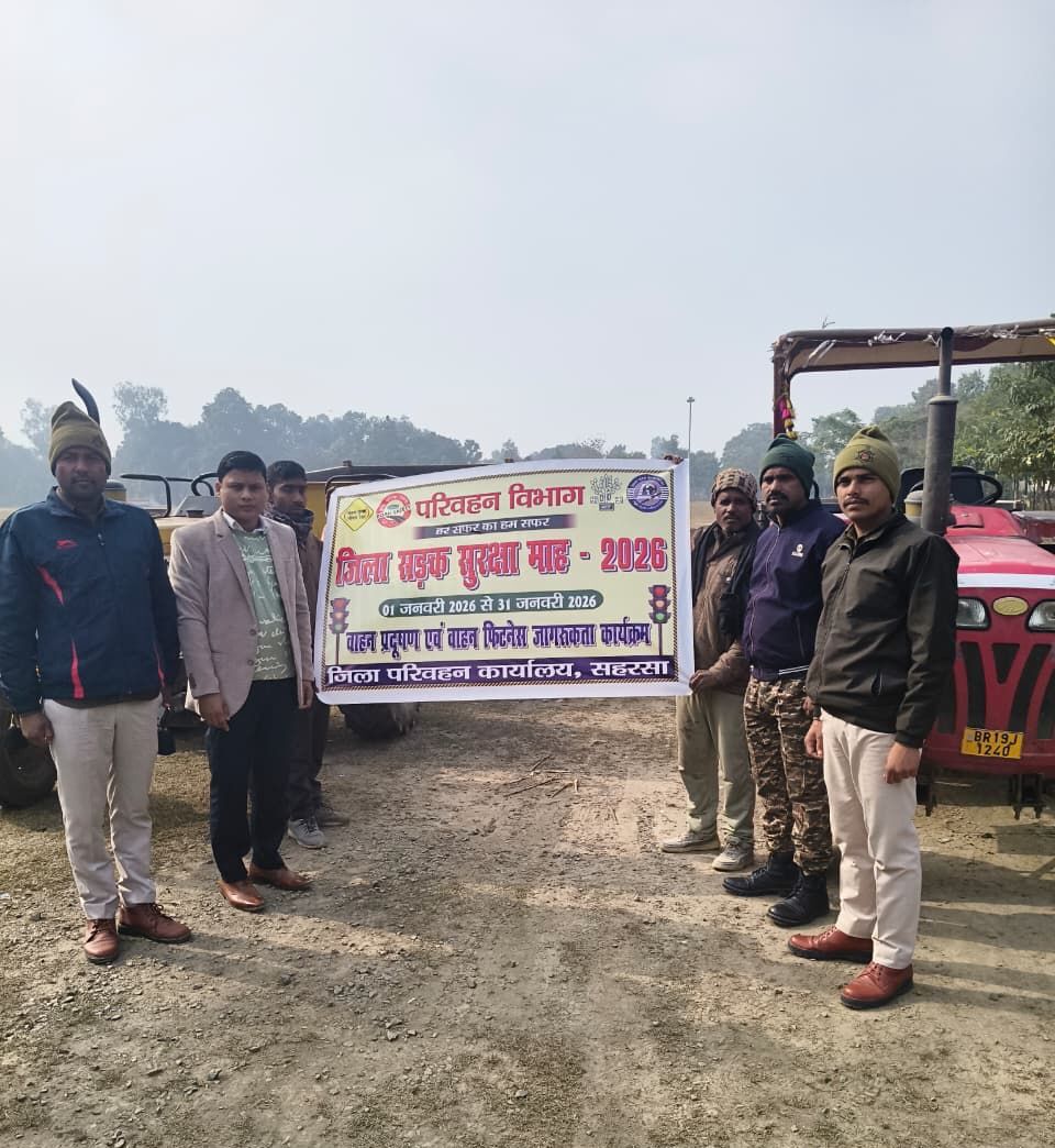 सड़क सुरक्षा माह के तहत एमवीआई के नेतृत्व में चलाया गया जागरूकता अभियान सहरसा . सड़क सुरक्षा माह के अवसर पर मोटरयान निरीक्षक बृजमोहन पटवारी के नेतृत्व में शुक्रवार को वाहन प्रदूषण नियंत्रण एवं वाहन फिटनेस संबंधी जागरूकता कार्यक्रम का आयोजन किया गया. कार्यक्रम के दौरान आमजनों व वाहन चालकों को निर्धारित समय पर वाहन फिटनेस प्रमाण पत्र, प्रदूषण जांच कराने, मानक अनुरूप वाहन संचालन एवं नियमित रख-रखाव के महत्व की जानकारी दी गयी. मोटरयान निरीक्षक पटवारी ने बताया कि फिट व कम प्रदूषण वाले वाहन ना केवल पर्यावरण संरक्षण में सहायक हैं. बल्कि सड़क दुर्घटनाओं में भी कमी लाते हैं. इस मौके पर वाहन चालकों से यातायात नियमों का पालन करने, हेलमेट व सीट बेल्ट का अनिवार्य उपयोग करने एवं ओवरलोडिंग व तेज गति से बचने की अपील की गयी. कार्यक्रम में परिवहन विभाग के कर्मी, वाहन चालक एवं आम नागरिक मौजूद थे.