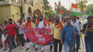कारगिल युद्ध के 25 वर्ष पर भाजपा युवा मोर्चा ने मनाया कारगिल विजय दिवस सहरसा. भारतीय जनता पार्टी युवा मोर्चा ने गुरुवार को कारगिल युद्ध के 25 वर्ष पूरे होने के उपलक्ष्य में युवा मोर्चा अध्यक्ष सुरजीत सिंह कुशवाहा के नेतृत्व में व जिलाध्यक्ष दिवाकर सिंह के मार्गदर्शन में कारगिल विजय दिवस मनाया. विजय दिवस कार्यक्रम में सर्वप्रथम जिले के सभी शहीद परिवारों के घर जाकर उनके परिवार जनों को अंगवस्त्र, पुष्प गुच्छा देकर सम्मानित किया गया. वहीं जिला परिषद स्थित पूजा बैंक्विट हॉल में जनसभा का आयोजन किया गया. जनसभा के बाद सभी कारगिल शहीदों को याद करते हुए 25 मशाल के साथ मशाल जुलूस का आयोजन किया गया. यह मशाल जुलूस डीबी रोड, थाना चौक होते हुए वीर कुंवर सिंह चौक पर समाप्त हुआ. इसके बाद प्रदेश मंत्री भाजपा स्वदेश एवं जिलाध्यक्ष दिवाकर सिंह ने एक अखंड दीप का प्रज्जवलन कर युवा मोर्चा अध्यक्ष सुरजीत सिंह कुशवाहा को सौंपा. सुरजीत सिंह कुशवाहा ने कहा कि आज भारतीय जनता पार्टी युवा मोर्चा कारगिल युद्ध के 25 वर्ष को विजयोत्सव के रूप में पूरे देश भर में मना रही है. इस अखंड दीप को 25 घंटे तक लगातार जलाना है व कारगिल के सारे शहीदों को नमन करना है. यह दीप नगर थाना स्थित बजरंगबली मंदिर में रखा गया है. जिसकी निगरानी 25 घंटे तक युवा मोर्चा कार्यकर्ता करेंगे. कारगिल में शहीद सभी वीर जवानों को उनके हौंसले को नमन है. कार्यक्रम को सफल बनाने में युवा मोर्चा महामंत्री राणा का रणजीत सिंह, राजकुमार शाह, उपाध्यक्ष सूचित कुशवाहा रतन दुबे, अतुल पारासर, जिला मंत्री नितेश यादव, अमित आकर्षण, भारतीय जनता पार्टी उपाध्यक्ष सिद्धार्थ सिंह सिद्धू, महिला मोर्चा अध्यक्ष रिंकी देवी, सुगमनी देवी, राम प्रभा देवी, पार्वती देवी, कंचन देवी, ममता देवी, बबली भगत, नगर अध्यक्ष भैरव झा, महामंत्री अनुज कुमार सिंह, अरुण निराला, आशीष कुमार, रणविजय यादव, विनीत सिंह, योगांशु कुमार, गोल्डी कुमार, प्रभात वर्मा सहित अन्य मौजूद थे.
