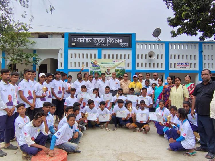 सफल प्रतिभागियों को किया गया सम्मानित सहरसा . बिहार शिक्षा परियोंजना के मशाल के तहत बिहार राज्य खेल प्रतिभा खोज प्रतियोगिता यूसीआरसी स्तरीय अंडर 14 से 16 तक के बालक व बालिकाओं के लिए विभिन्न खेल विद्याओं का आयोजन सीआरसी मनोहर उच्च विद्यालय परिसर में शनिवार को संपन्न हो गया. जिसमें मुख्य अतिथि विद्यालय के पूर्व प्रधानाध्यापक सुनील कुमार झा एवं वर्तमान प्रभारी प्रधानाध्यापक मिथिलेश कुमार ने सफल खिलाड़ियों को पुरस्कृत किया. खेल प्रतियोगिता को सफल बनाने में शारीरिक शिक्षक प्रमोद कुमार झा, रूबी कुमारी, अंशु कुमारी, सनोज कुमार, ब्रजेश कुमार एवं विद्यालय परिवार के सभी सदस्य ने सफलतापूर्वक संपन्न कराया. सभी चयनित खिलाड़ी को टी शर्ट, मेडल एवं ट्रॉफी दी गयी. जिसमें कबड्डी के अंडर14 में बालक में प्रथम मध्य विद्यालय झपड़ा टोला एवं द्वितीय मनोहर मध्य विद्यालय, तृतीय मध्य विद्यालय भेड़धरी, बालिका में प्रथम मध्य विद्यालय झपड़ा टोला, द्वितीय चित्रगुप्त मध्य विद्यालय, फुटबॉल में अंडर 14 बालक में प्रथम मध्य विद्यालय झपड़ा टोला, द्वितीय मनोहर मध्य विद्यालय, 60 मीटर दौड़ में प्रथम प्रीति कुमारी मध्य विद्यालय झपड़ा टोला, बालक 60 मीटर दौड़ में अनु कुमार मध्य विद्यालय झपड़ा टोला, द्वितीय तन्मय कुमार मनोहर मध्य विद्यालय, तृतीय कृष्णा कुमार चित्रगुप्त मध्य विद्यालय, साइकिल अंडर 14 में प्रथम अनीस कुमार मनोहर मध्य विद्यालय, द्वितीय श्रीयंम कुमार मध्य विद्यालय झपड़ा टोला, तृतीय अंश कुमार श्रीवास्तव चित्रगुप्त मध्य विद्यालय, बालिका साइकिल में प्रथम रहमती प्रवीण मध्य विद्यालय झपड़ा टोला, द्वितीय शबनम प्रवीण चित्रगुप्त मध्य विद्यालय रही. वहीं अंडर16 कबड्डी में, वॉलीबॉल में, फुटबॉल में मनोहर उच्च विद्यालय पूरब बाजार, साइकिल रेस में मो सलमान मनोहर उच्च विद्यालय पूरब बाजार रहा. सभी शिक्षकों के बीच मनोहर उच्च विद्यालय के प्रांगण में सभी को पुरस्कृत किया गया. जो आगे चलकर बीआरसी स्तर पर खेलेंगे एवं बीआरसी का मान व जिला का मान बढ़ायेंगे.