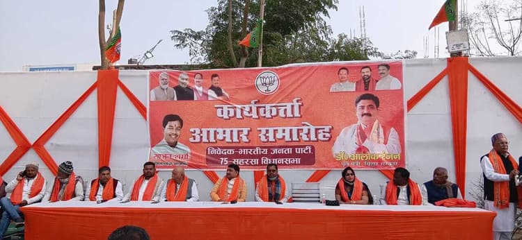 सहरसा. निवर्तमान विधायक सह पूर्व मंत्री बिहार सरकार डॉ आलोक रंजन के आवास पर सोमवार को कार्यकर्ता आभार समारोह का आयोजन किया गया. समारोह को संबोधित करते निवर्तमान विधायक डॉ आलोक रंजन ने कहा कि वे सहरसा के जनता के सुख दुख में हमेशा साथ रहेंगे. आपकी मेहनत के कारण हम इतना वोट प्राप्त करने में सफल हुए हैं. इसके लिए आपका आभार प्रकट करते हैं. उन्होंने कहा कि इस चुनाव में जनता ने एक लाख 13 हजार मत देकर जो अपार स्नेह, विश्वास एवं समर्थन प्रदान किया. वह ना केवल ऐतिहासिक है, बल्कि जनसेवा के प्रति जनभावनाओं का जीवंत प्रमाण भी है. चुनाव परिणाम चाहे जो भी रहे हों, लेकिन इस संघर्ष में जिस प्रकार पार्टी के कर्मठ कार्यकर्ताओं ने दिन-रात एक कर, घर-घर जाकर, बूथ स्तर तक संगठन को मजबूत करते ईमानदारी, निष्ठा एवं समर्पण के साथ कार्य किया, वह अविस्मरणीय है. यह चुनाव केवल मतों का नहीं, बल्कि विचारधारा, विश्वास एवं संगठनात्मक शक्ति की परीक्षा थी, इन्हीं भावनाओं के साथ आज कार्यकर्ता आभार समारोह का आयोजन किया गया.इस मौके पर डॉ आलोक रंजन ने सभी कार्यकर्ताओं के प्रति गहरी कृतज्ञता व्यक्त करते कहा कि यह पराजय नहीं है, बल्कि आगे की लड़ाई के लिए एक नया संकल्प है. उन्होंने कहा कि आप सभी का पसीना, आपकी मेहनत एवं आपका विश्वास ही मेरी सबसे बड़ी पूंजी है. यह संघर्ष रुकेगा नहीं, जनसेवा का यह कारवां और मजबूती से आगे बढ़ेगा. आभार समारोह की अध्यक्षता भाजपा जिलाध्यक्ष साजन शर्मा एवं संचालन जिला महामंत्री शिव भूषण सिंह ने किया. समारोह में जदयू जिलाध्यक्ष चंद्रदेव मुखिया, लोजपा आर के जिलाध्यक्ष महेंद्र शर्मा, हम जिलाध्यक्ष रामरतन ऋषिदेव, रालोमो प्रदेश महासचिव शिवेन्द्र सिंह जीशू, भाजपा निवर्तमान जिलाध्यक्ष दिवाकर सिंह, पूर्व विधायक सुरेंद्र यादव, पूर्व जिलाध्यक्ष मदन प्रसाद चौधरी माधव जी, जिला महासचिव सीएम झा, जदयू प्रदेश महासचिव अक्षय झा, नगर पंचायत सभापति दीपिका शेखर, चैंबर ऑफ कामर्स से गुलटी झा, रंजीत दास, पिंकू झा मुखिया, अनमोल भगत, रितेश रंजन, मनोज यादव, जिला मंत्री पंकज पाठक, मुकेश मानस, विपीन कुशवाहा, भाई भीएस, कुमार अमरज्योति, युवा मोर्चा के सुरजीत सिंह कुशवाहा, महिला मोर्चा की सुगामनी देवी सहित सभी जिला पदाधिकारी, मंच मोर्चा जिलाध्यक्ष, मंडल अध्यक्ष मौजूद थे.