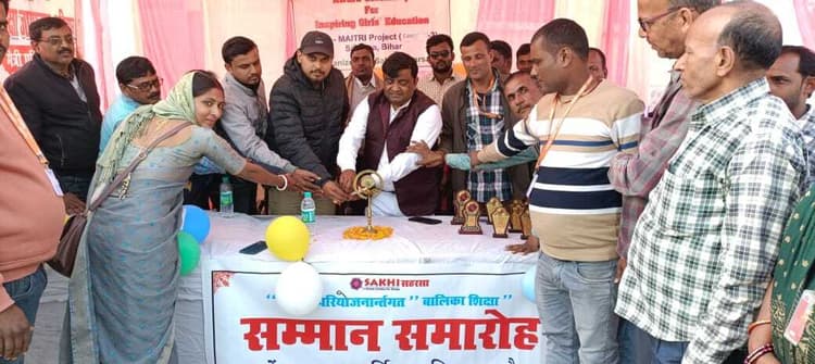 पतरघट. उच्च माध्यमिक विद्यालय किशनपुर के प्रांगण में शुक्रवार को सखी संस्थान के द्वारा बालिका शिक्षा जागरूकता अभियान मैत्री परियोजना के तहत शिक्षक सम्मान समारोह का आयोजन किया गया. कार्यक्रम में शामिल बीआरसी से बीपीएम निशांत कुमार, अनुभव कुमार एवं सखी संस्थान के जिला समन्वयक विवेकानंद कुमार के द्वारा दीप प्रज्ज्वलित कर उद्घाटन किया गया. इस दौरान बीपीएम निशांत कुमार ने सखी संस्थान के कार्यों की सराहना करते हुए उक्त शैक्षणिक सत्र में नामांकन लेने के लिए शेष बचे हुए बालिकाओं के अभिभावकों से नामांकन करवाने की अपील की, जबकि जिला समन्वयक विवेकानंद कुमार ने बताया कि उक्त शैक्षणिक सत्र में 10 हजार बालिका का सहरसा जिले में नामांकन कराया गया है. उन्होंने कहा कि 14 से 16 वर्ष के बालिकाओं को मुफ्त शिक्षा प्रदान करना सखी संस्थान का मुख्य उद्देश्य है. इस दौरान मौजूद बालिकाओं को जागरूक करते हुए इसके संबंध में विस्तृत जानकारी दी. प्रखंड समन्वयक गिरिजेश कुमार ने बालिका शिक्षा के महत्व पर प्रकाश डालते कहा कि उक्त शैक्षणिक सत्र में 1 हजार 65 बालिका का सखी संस्थान के द्वारा प्रखंड क्षेत्र में नामांकन कराया गया है. उन्होंने अभिभावकों से प्रतिदिन बालिकाओं को विद्यालय भेजने की अपील की जा रही है. इस दौरान कार्यक्रम में मौजूद सभी प्रधानाध्यापक ने सखी संस्थान के कार्यों की सराहना की. मौके पर राजीव कुमार, मंजेश कुमार, कृष्ण कुमार, धर्मेंद्र कुमार, अभिषेक कुमार, विनिता कुमारी, रामरतन कुमार, अनमोल कुमार, श्वेता कुमारी, अनिल कुमार, प्रवीण कुमार, दिनेश कुमार, संतोष कुमार सहित कई अन्य मौजूद रहे. फोटो – सहरसा 07 – कार्यक्रम का उद्घाटन करते अतिथि.