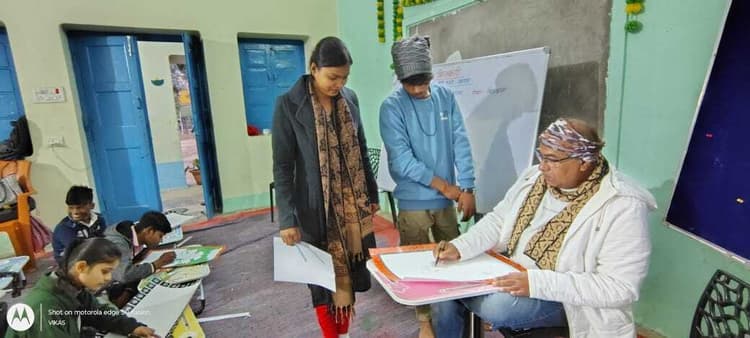 किलकारी के बच्चों को कार्यशाला के माध्यम से कोसी पेंटिंग का दिया जा रहा प्रशिक्षण सहरसा.किलकारी बिहार बाल भवन में नौ दिवसीय कोसी चित्रकला शैली कार्यशाला का आयोजन किया गया. जिसमें चित्रकला विशेषज्ञ राजीव रंजन द्वारा बच्चों को कोसी पेंटिंग की जानकारी दी गयी. इस कार्यशाला का मुख्य उद्देश्य बच्चे अपने आस पास के लोक चित्रकला की शैली व कोसी नदी से जुड़े चीजों की विशेषता को जान सके व उसे चित्र के रूप में उतार सके. इस पेंटिंग की खास बात यह है कि प्राकृतिक सौंदर्य विषय पर आधारित कोसी शैली की पेंटिंग में कोसी नदी की सौंदर्य एवं संस्कृति की झलक दिखती है. कोसी पेंटिंग में चटकीले रंगों एवं सूक्ष्म रेखाओं के अलावा डॉट का भी इस्तमाल किया जाता है. पेंटिंग के चारों ओर बॉर्डर को भी अलंकृत किया जाता है. जो इस पेंटिंग को और खूबसूरती प्रदान करती है. चित्रकार राजीव राज द्वारा ही यह सृजित की गयी है एवं इसे विश्व स्तरीय आर्ट एग्जिबिशन स्विट्जरलैंड, टोक्यो एवं दुबई में भी सराहना मिल चुकी है. कार्यशाला विशेषज्ञ राजीव राज ने अपने विचार साझा करते बताया कि उन्हें बच्चों को कोसी पेंटिग की जानकारी देते बहुत खुशी हो रही है कि 2008 के बाढ विभीषिका के बाद कोसी पेंटिंग चर्चा में लगभग 16 साल पूरे होने के बाद बिहार सरकार के एक इकाई बाल भवन किलकारी सहरसा से इसकी कर्यशाला प्रारंभ की गयी है. कोसी पेंटिंग कोसी नदी के पृष्ट भूमि पर केंद्रित कृति है. नदी के सौंदर्य एवं संस्कृति को इन चित्रों में पिरोया गया है. 15 जनवरी से 23 जनवरी तक चल रहे इस कर्यशाला में लगभग 30 बच्चे को कोसी शैली के गुण के बारे में चित्रकार राजीव राज ने बताया कि शनिवार को इस कार्यशाला में अब तक बनाई गयी कोसी शैली पेंटिंग को बच्चों द्वारा प्रेक्षागृह में प्रदर्शित किया जाएगा. किलकारी सहरसा के प्रमंडल कार्यक्रम समन्वयक प्रणव भारती ने किलकारी के बारे में बताते कहा कि किलकारी बिहार सरकार, शिक्षा विभाग की एक ऐसी संस्था है जो बच्चों को उसके रुचि के अनुसार निःशुल्क प्रशिक्षण देती है. साथ ही बच्चों को अपनी संस्कृति एवं शैली से जोड़ने का काम भी करती है.