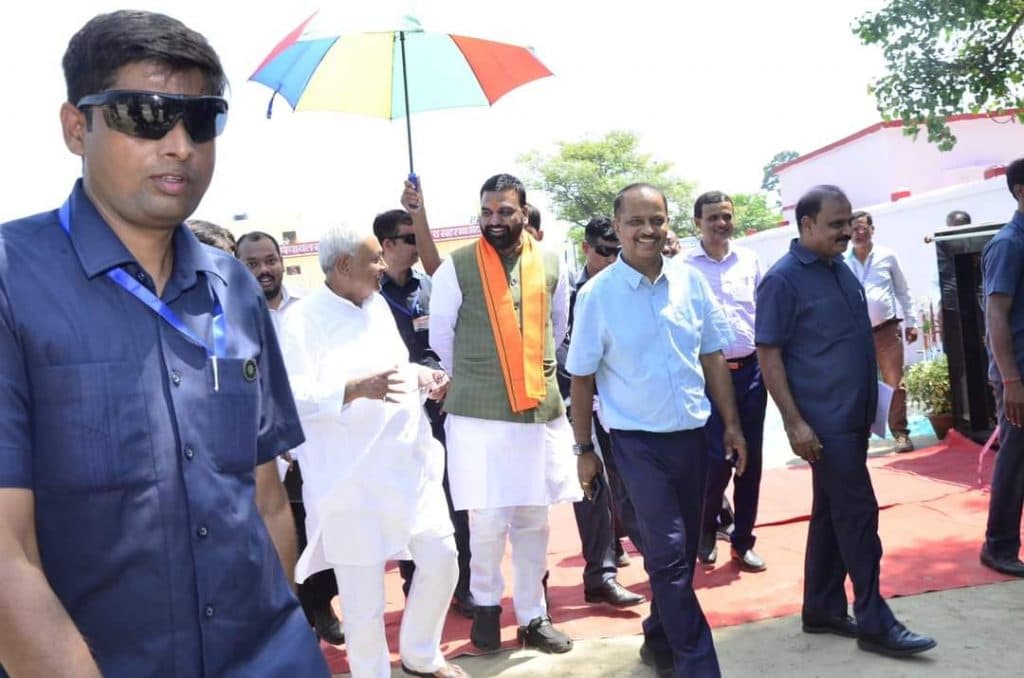 गहन सुरक्षा व्यवस्था के बीच शुक्रवार को मुख्यमंत्री नीतीश कुमार ने सहरसा के सदर प्रखंड कहरा के दिवारी स्थित प्राचीन मां विषहरा भगवती मंदिर का उद्घाटन किया. वे अपने निर्धारित समय से थोड़ा पूर्व ही मंदिर पहुंचे. वे मंदिर में लगभग 15 मिनट रुकने के बाद अमरपुर के लिए रवाना हो गये. जहां उन्होंने विषहरा महोत्सव के आयोजन को लेकर घोषणा की. उनके साथ उप मुख्यमंत्री सम्राट चौधरी, केंद्रीय मंत्री संजय झा भी पहुंचे.