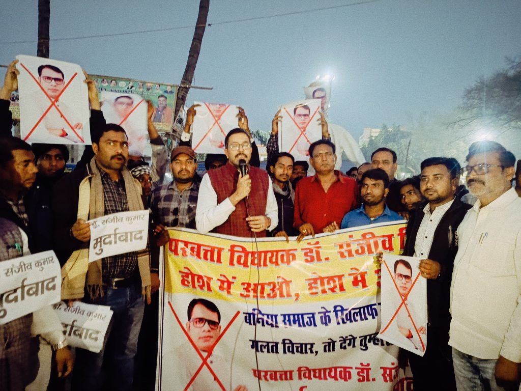 खगड़िया के परबत्ता विधायक डॉ संजीव कुमार द्वारा खगड़िया सांसद राजेश वर्मा व वैश्य समाज के प्रति आपत्तिजनक बयानबाजी के खिलाफ बुधवार की देर शाम निकाल गया आक्रोश मार्च
