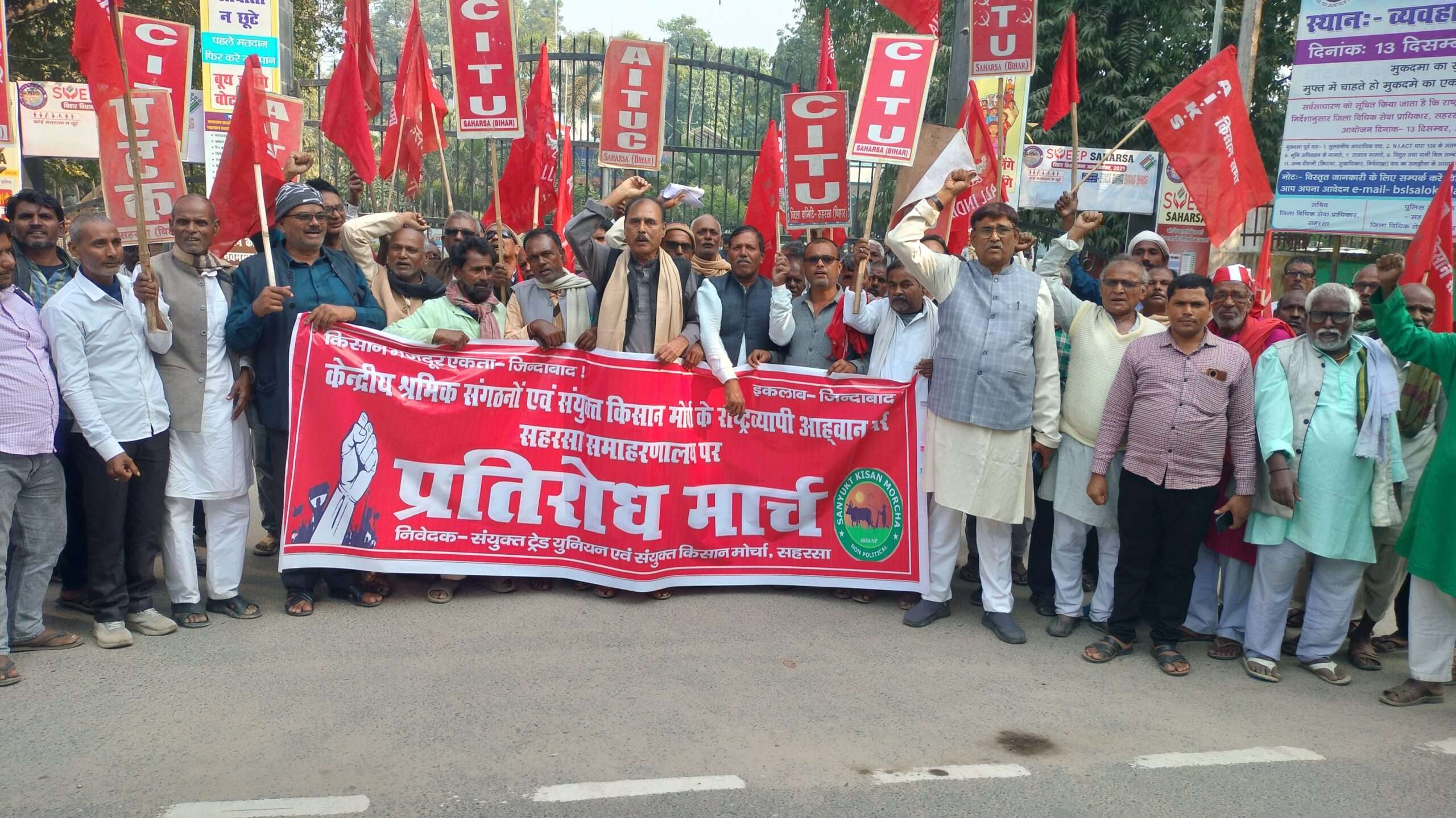 सहरसा. संयुक्त ट्रेड यूनियन एवं संयुक्त किसान मोर्चा के राष्ट्र व्यापी आह्वान पर बुधवार को मजदूर और किसान विरोधी कानून के खिलाफ प्रतिरोध मार्च निकाला गया. मार्च वीर कुंवर सिंह चौक से समाहरणालय तक निकाला गया. सीटू, एटक एवं किसान संगठन के झंडों बैनर तले किसान मजदूरों का बड़ा जत्था सरकार के खिलाफ मजदूर विरोधी चार लेबर कोड बिल रद्द करों, बख्तियारपुर एवं सोनवर्षा श्रम प्रवर्तन पदाधिकारी को निलंबित करों, किसानों को फसलों का सही दाम दो, एमएसपी की गारंटी करो, मोंथा चक्रवर्ती तूफान से क्षति हुई फसल का उचित मुआवजा किसानों को दो, किसान मजदूर विरोधी सरकार मुर्दाबाद, हिटलरशाही नहीं चलीं तो मोदी शाही नहीं चलेगी, धान क्रय एवं भुगतान तुरंत शुरू करों, खाद बीज की किल्लत एवं कालाबाजारी पर रोक लगाओ के गगन फेदी नारे लगा रहे थे. समाहरणालय पर पहुंच प्रतिरोध मार्च सभा में तब्दील हो गया.सीटू नेता नसीम उद्दीन की अध्यक्षता में चली सभा को संबोधित करते बिहार राज्य किसान सभा के प्रदेश महासचिव विनोद कुमार ने कहा कि डबल इंजन की सरकार किसान विरोधी व मजदूर विरोधी जनविरोधी सरकार है. जब से सत्ता में सरकार आयी तब से अपने पूंजीपतियों मित्रों को खुश करने के लिए सुनियोजित तरीके से एक पर एक हमला कर रही है. मजदूरों ने अपनी शहादत के बल पर 44 कानून बनाया, लेकिन भाजपा सरकार ने अपने चहेते पूंजीपति दोस्त को फायदा पहुंचाने के लिए 44 कानून खत्म कर चार लेबर कोड बिल लाया. जिसने मजदूर वर्ग के घाव पर नमक छिड़क दिया, जो बर्दाश्त नहीं करेंगे. किसान आंदोलन में शहीद किसान के परिवार को उचित मुआवजा दिया जाये.