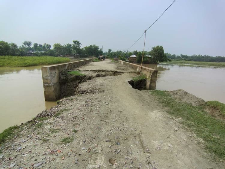 बरुआही से देवका पीएमजी सड़क नदी का जलस्तर बढ़ने से कई जगह क्षतिग्रस्त नवहट्टा . कोसी पूर्वी तटबंध के अंदर का लाइफ लाइन माने जाने वाली प्रधानमंत्री ग्राम सड़क योजना कई जगह कोसी नदी की जलस्तर बढ़ने के बाद पानी का दबाव बनने पर क्षतिग्रस्त हो गयी है. वहीं कई पुलिया के एप्रोच पथ में रेनकट के कारण क्षतिग्रस्त हो जाने से आवागमन पूरी तरह बाधित हो गया है. परताहा गांव से उत्तर पासवान टोली के समीप बने पीएमजी सड़क के पुलिया का दोनों तरफ से एप्रोच बह जाने से चार से पांच गांव का संपर्क पथ पूरी तरह बाधित होने की कगार पर है. लोग किसी तरह पैदल जा आ रहे हैं. एप्रोच पथ बहने से चारपहिया गाड़ी तो दूर की बात है, मोटरसाइकिल से आने जाने में भी बड़ी दुर्घटना होने की संभावना है. तटबंध के अंदर पीएमजी सड़क के क्षतिग्रस्त रहने से आवागमन में काफी परेशानी की सामना करना पड़ रहा है. स्थानीय चंदन कुमार ने बताया कि समय रहते हुए संवेदक के द्वारा कार्य पूरा नहीं किया गया. जिस कारण पीएमजी सड़क हर जगह क्षतिग्रस्त हो गयी है. आवागमन में काफी परेशानी हो रही है.