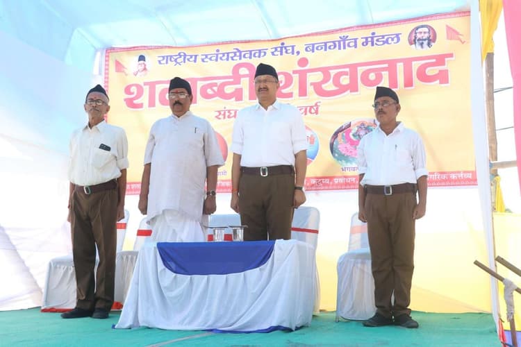 कहरा. राष्ट्रीय स्वयंसेवक संघ के शताब्दी वर्ष के अवसर पर शुक्रवार को बनगांव मंडल में संत लक्ष्मीनाथ गोसाईं के पावन कुटी पर शताब्दी शंखनाद कार्यक्रम उत्साह पूर्वक मनाया. इस अवसर पर सुबह आठ बजे बनगांव मंडल के स्वयंसेवकों द्वारा पूर्ण गणवेश में बाबाजी कुटी से पथ संचलन करते हुए मुख्य सड़क होकर पूरा गांव भ्रमण करते वापस बाबाजी कुटी में समापन किया. इस दौरान ग्रामीण सहित राहगीरों ने स्वयंसेवकों पर पुष्प वर्षा कर हर्ष जताया. पथ संचलन के बाद बाबाजी कुटी पर आरएसएस के सह सरकार्यवाह डाॅ आलोक कुमार ने अपने ओजस्वी उद्बोधन से मौजूद लोगों को संबोधित किया. भौतिक विज्ञान के शिक्षक डाॅ इंदुशेखर झा ने अध्यक्षता की. विभाग सह संघचालक सतीश चंद्र वर्मा एवं बनगांव मंडल संघचालक गणेश जनगण द्वारा ध्वजारोहण एवं प्रार्थना पंडित नवीन कुमार खां के द्वारा की गयी. वहीं अतिथियों का परिचय मंडल कार्यवाह प्रदीप कुमार झा द्वारा शाखा के मुख्य शिक्षक सौरभ कुमार झा के निर्देशन में कराया गया. कार्यक्रम में सह प्रांत प्रचारक प्रवीर, प्रांत सेवा प्रमुख राजा राम, प्रांत किसान प्रमुख लक्खी, सह प्रांत गौ संवर्धन प्रमुख उमा शंकर, सह प्रांत कार्यवाह जीवन, सह प्रांत संपर्क प्रमुख विजय, विभाग प्रचारक सुमित, पारस कुमार झा सहित जिला कार्यकारिणी के सभी सदस्य सहित विद्यावरण, रोशन, विष्णु, सुमन समाज, आशीष टिंकू, रणधीर, शिवा कात्यायन सहित अन्य संघनिष्ठ कार्यकर्ता मौजूद थे.