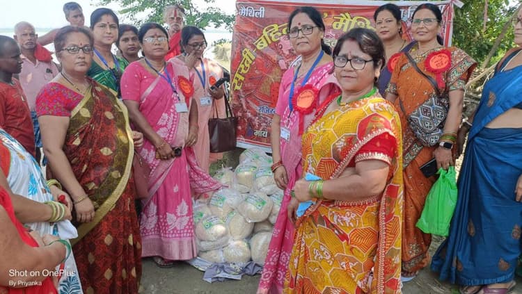 सहरसा. सखी बहिनपा मैथिलानी समूह जिला इकाई ने रविवार को जिला के महिषी प्रखंड के कोठिया गांव में कोसी नदी के कटाव से बेघर हुए लोगों के बीच चूरा, मूढ़ी, बच्चों के लिए बिस्कुट का वितरण किया गया. समूह की संचालिका नमिता झा ने उन लोगों की दयनीय स्थिति को देखते हुए दुख जाहिर किया एवं सभी सखियों के साथ फिर से मिलने की बात से सभी को आश्वस्त किया. वितरण में अंजू झा, कुमारी किरण, प्रियंका झा, किरण झा, एंकी झा, नूतन झा, पुतुल चौधरी, किरण मिश्रा सहित अन्य सखियों का अहम योगदान रहा.