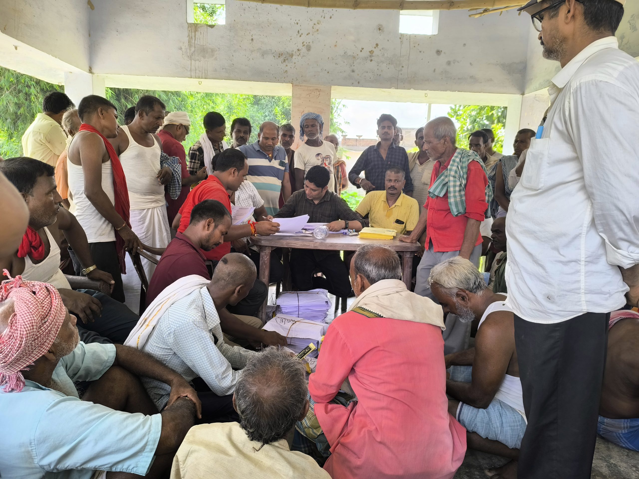 सत्तरकटैया . प्रखंड के विभिन्न पंचायतों में जमाबंदी सुधार के लिए आयोजित राजस्व महा अभियान की शुरुआत शनिवार से हो गयी है. जिसमें कर्मियों की कमी व व्यवस्था के अभाव में अफरा-तफरी का माहौल देखा गया. शिविर में संबंधित पंचायत के कर्मचारी, किसान सलाहकार, वार्ड सदस्य आदि के द्वारा जमाबंदी पंजी का वितरण किया गया. सत्तर पंचायत स्थित प्राथमिक विद्यालय सिमराही टोला के पास चबूतरा पर कर्मचारी मुकेश कुमार व किसान सलाहकार कुमार गणेश व अन्य सहयोगियों के द्वारा जमाबंदी पंजी का वितरण किया गया. कर्मियों की कमी के कारण राजस्व कर्मचारी परेशान नजर आये. वहीं आमलोग भी भीषण गर्मी में जमाबंदी पंजी लेने लाइन में खड़े थे. पंचायत की मुखिया गीता देवी, सरपंच रंजू देवी, पंचायत समिति सदस्य कृष्ण कुमार उर्फ़ माखन यादव व सुरेंद्र यादव सहित कई वार्ड सदस्यों ने कर्मियों की संख्या बढ़ाने व प्रत्येक वार्ड में शिविर लगाकर जमाबंदी पंजी व प्रपत्र वितरण कराने की मांग विभागीय पदाधिकारी से की है. जनप्रतिनिधि ने कहा कि मतदाता पुनरिक्षण कार्य की तरह जमाबंदी पंजी को वार्ड सदस्य, किसान सलाहकार व विकास मित्र के सहयोग से वार्ड स्तर पर घर घर वितरण करने से आम लोगों को सुविधा मिलेगी.