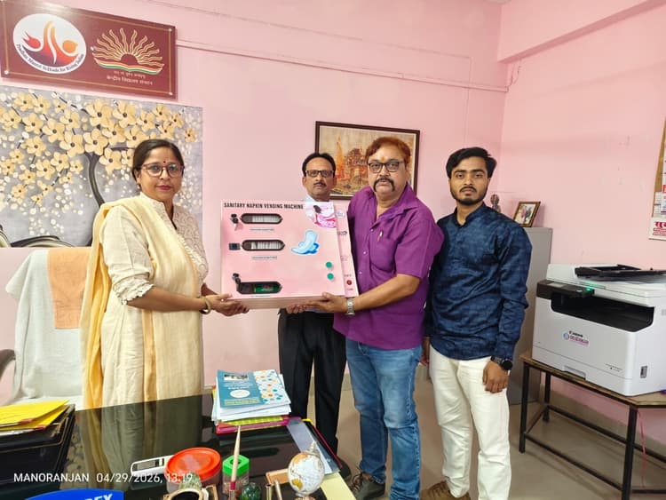 Saharsa News : केंद्रीय विद्यालय को सेनेटरी पैड वेंडिंग मशीन की गयी भेंट