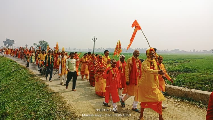 कथा वाचन से पूर्व निकाली गयी कलश यात्रा सोनवर्षाराज. नगर पंचायत के सोहा गांव के रजवाड़ा टोला में शुक्रवार से सात दिवसीय श्रीमद् भागवत कथा ज्ञान यज्ञ प्रारंभ हुआ. कथा वाचन से पूर्व भव्य कलश यात्रा निकाली गयी. कलश यात्रा में शामिल सैकडों महिलाओं द्वारा यज्ञ स्थल से कलश लेकर सोहा गांव होते हुए तिलाबे नदी पहुंच वैदिक मंत्रोचारण के बीच अपने अपने कलश में जल भरकर पूरे सोहा ग्राम का भ्रमण करते हुए यज्ञ स्थल पर कलशों को सुरक्षित रखा गया. इस दौरान ढ़ोल नगाड़े व जय श्री राम के उद्घोष पूरे गांव का माहौल धर्मपरायण हो गया. सात दिवसीय भागवत कथा का वाचन मुंगेर से आये पंडित कौशल कुमार झा द्वारा किया जायेगा. सात दिनों तक सुबह छह बजे कलश पूजन तथा संध्या 3 बजे से कथा का वाचन किया जाना है. इस बाबत अनमोल झा ने बताया कि कथा का आयोजन समस्त झा परिवारों द्वारा करवाया जा रहा है. इस दौरान नगर उपाध्यक्ष प्रतिनिधि संजीव कुमार सिंह, मणिकांत झा, समाजसेवी सत्यदेव सिंह, शंभु झा, अभिषेक कुमार विक्की, रमेश झा, रमेश यादव, विमल यादव सहित दर्जनों गणमान्य मौजूद थे.