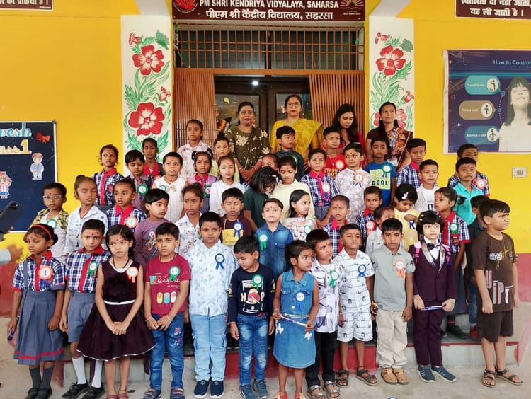 Saharsa केंद्रीय विद्यालय में नये नामांकित नन्हें बच्चों का हर्षोल्लास के साथ किया गया स्वागत