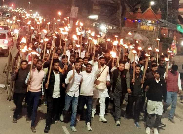 यूजीसी प्रमोशन ऑफ इक्वलिटी रेगुलेशन के समर्थन में संयुक्त छात्र-युवा संघर्ष समिति ने निकाला मशाल जुलूस